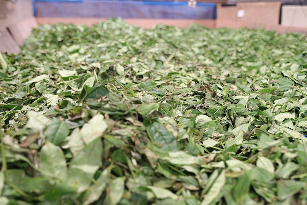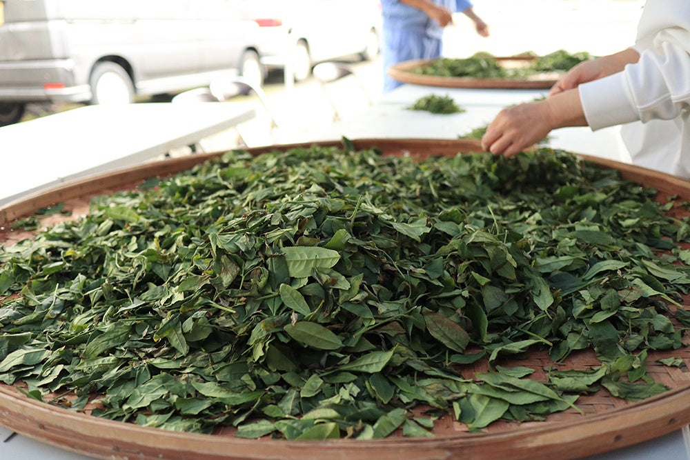 イベントの前日に摘採し、萎凋(いちょう)(※)まで済ませた茶葉の様子を見学いただきました。