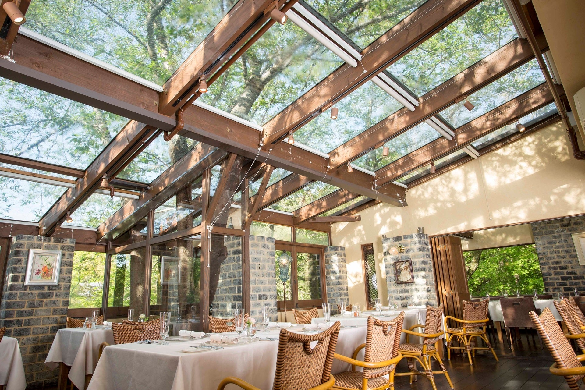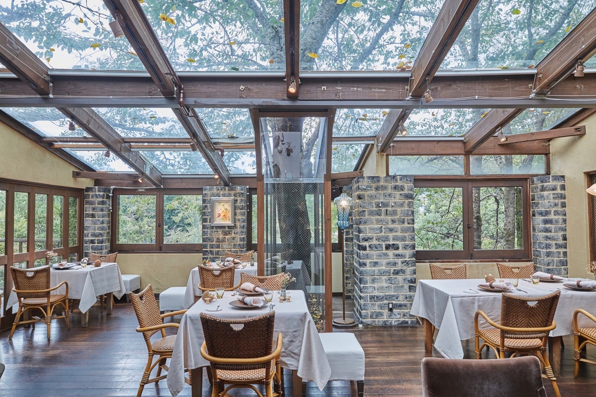 当店が位置するのは、若草山の麓、春日大社のすぐそばという、自然と文化が溶け合う特別な場所です。近鉄奈良駅など市街地から車でわずか10分ながら、街の喧騒を離れた静かな環境が広がります。テラスや多くの窓から四季の移ろいを豊かに感じられる店内で過ごす時間は、訪れる人に非日常をもたらしてくれます。
