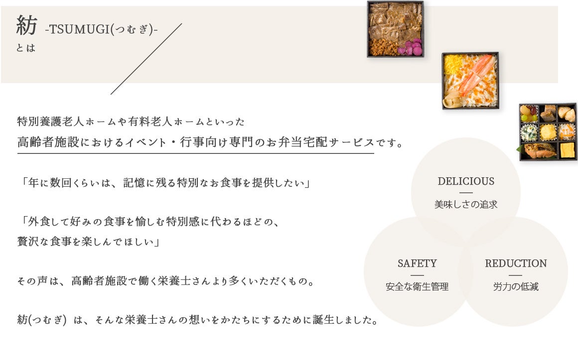 高齢者施設向け弁当宅配サービス「紡-TSUMUGI(つむぎ)」からのお知らせ