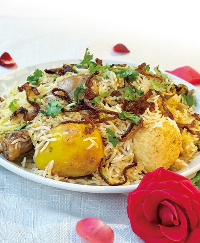 ローズウォーターやケオラウォーター、ミッターアッターなど花の香りを重ねた華やかなビリヤニです。