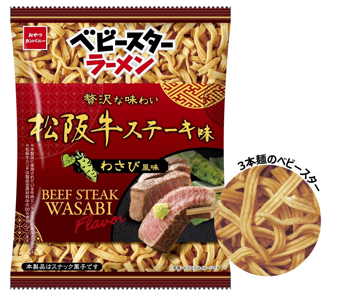 株式会社おやつカンパニー(本社所在地:三重県津市 代表取締役社長:横山正志)は、『ベビースターラーメン(松阪牛ステーキ味わさび風味)』を、2025年10月14日(火)より全国のファミリーマートにて期間限定発売します。