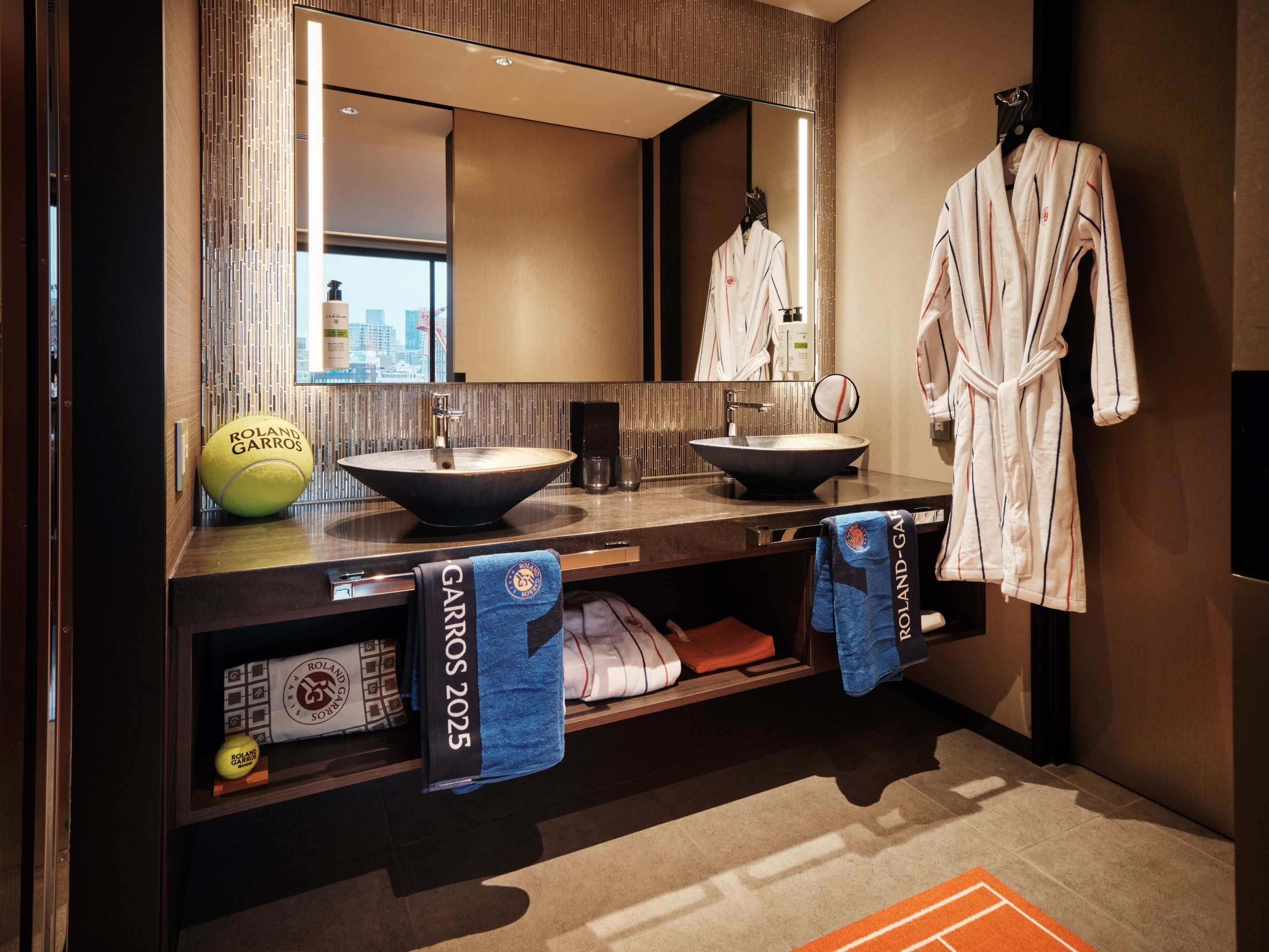 また、2025年10月14日(火)にプルマン東京田町で、第2回日本大会の開会式が開催されます。グランドスラム7度の優勝を誇る伝説のテニスプレーヤー、ジュスティーヌ・エナンが2025年日本大会のアンバサダーとして登場します。ALL Accorメンバー限定でのミート&グリートも予定しており、エリートメンバーはリワードポイントまたはオークション形式を利用して、ジュスティーヌ・エナンによるテニスクリニックや ジュニア シリーズ by ルノー 東京大会決勝の観戦チケット、さらにプルマン東京田町での滞在を含む特別体験に参加することができます。落札者は、とのコラボレーションによる特別スイートに宿泊可能です。バスルームにはテニスボールアート、壁面にはラケットアートなど、テニスをテーマにした特別な客室で、ローラン ギャロスの世界観と熱気を存分にご体感ください。