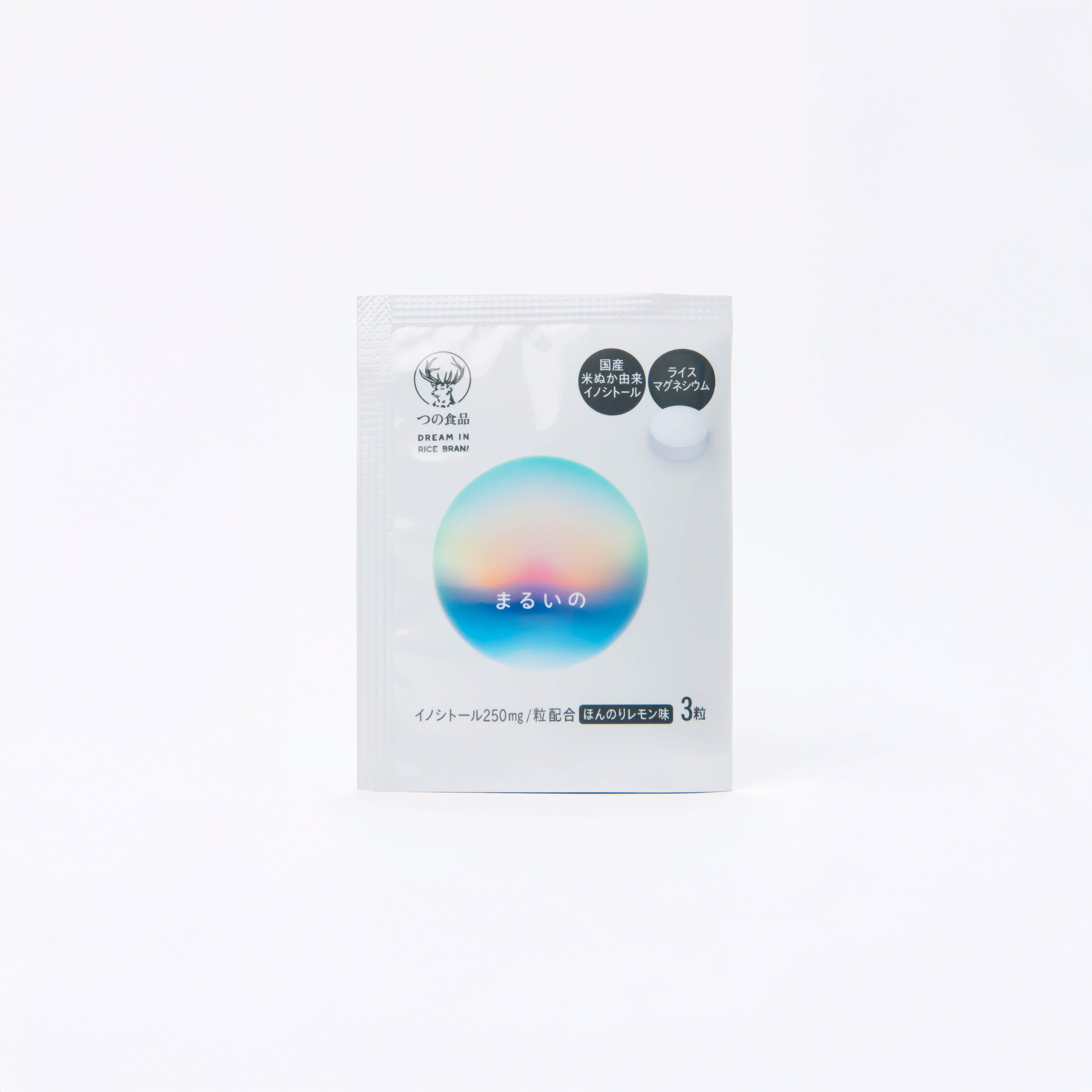 新商品「まるいの」は、忙しい毎日を送る方々に手軽にイノシトールを取り入れてほしいという思いで開発した、米ぬか由来イノシトール配合のタブレットです。爽やかなレモン味でリフレッシュしませんか。