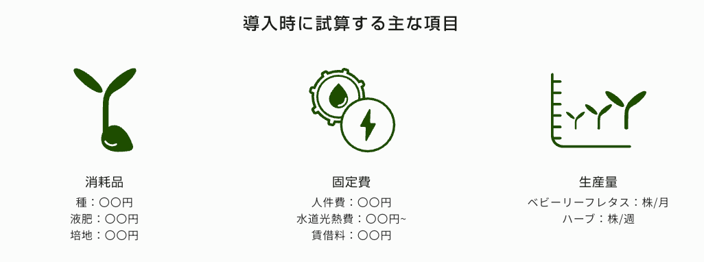 OYASAIでは、導入前にコストと生産量をシミュレーションし、最適なプラン設計をご一緒します。