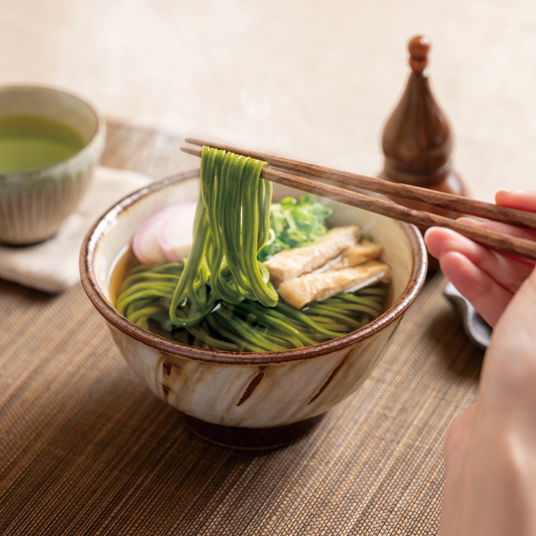 古くから、長い麺は「長寿」「夫婦円満」「末永い幸せ」の象徴とされ、結納や婚礼の引き出物など、祝いの席に欠かせない縁起物としても親しまれてきました。美しい緑と芳醇な香りを湛えた一杯を、大切な方への心尽くしの贈りものとしてお選びください。