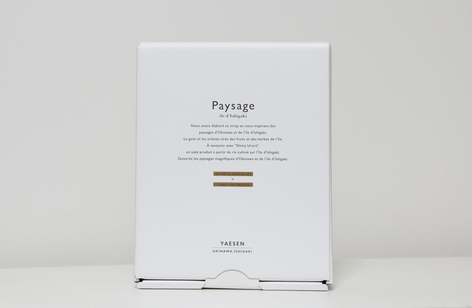 『Paysage(ペイザージュ)』は、沖縄・石垣島ゆかりの素材を使用し、ボタニカルな要素を加えた「飲むアロマ」のようなシロップ、こちらに八重泉酒造の泡盛『島うらら』を加えた3本セットです。アルコールでもノンアルコールでも、気分に合わせて様々なアレンジをお楽しみいただけます。