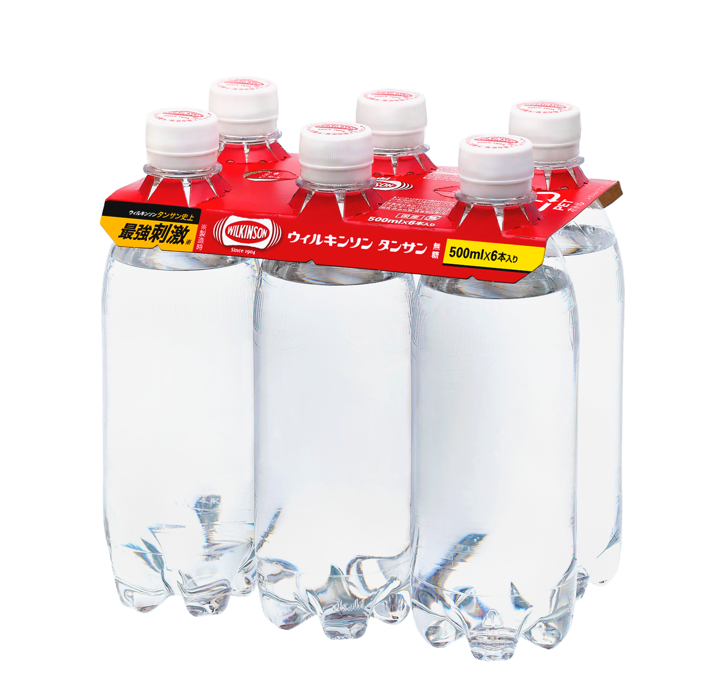 「ウィルキンソン タンサン ラベルレス エコマルチパック」は、従来のマルチパックのように紙資材でペットボトルの胴部まで覆うのではなく、上部のみを固定する形状にすることで、紙の使用量を75%削減しました。廃棄時にかさばらず、扱いやすさも向上しています。サイドパネルには切り欠きを設けることで、ボトルを1本ずつ取り出しやすくなるよう工夫しました。さらに、ラベルレスボトルを採用することで、プラスチック使用量を削減し、分別の手間も省いています。これらの工夫によって、従来の包装に比べて環境負荷の低減と手軽さを両立したパッケージになっています。