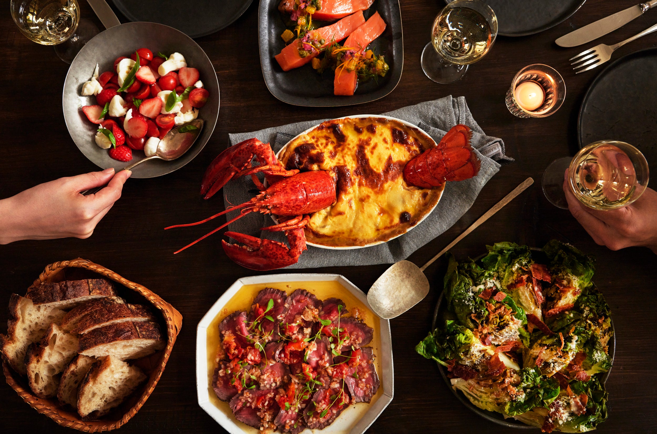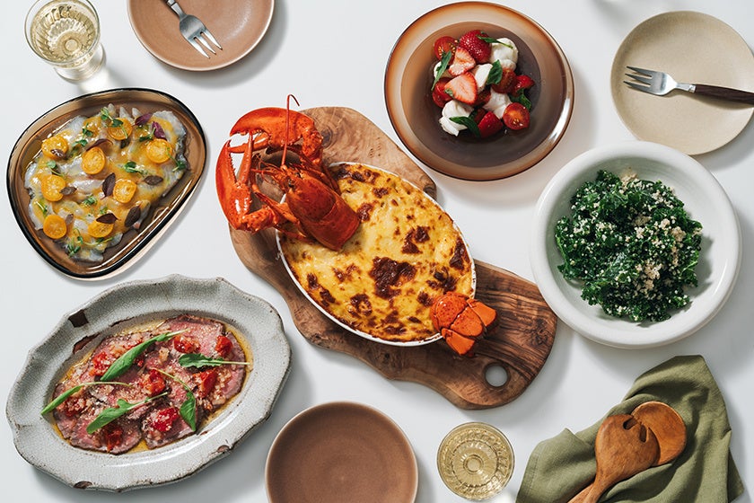 少しずつ、いろいろなおいしさを分かち合いたい。お酒片手に、おしゃべりをたのしみたい方に。タリアータやカルパッチョ、サラダなどのつまみやすいお料理と、食卓の中央を飾る「ロブスターグラタン」を組み合わせました。グラタンは、お食事の締めとしても食べ応えのある一品です。