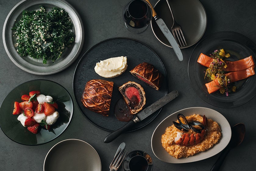 パティシエが心を込めてつくる特別なケーキや、メインディッシュには「仔羊ロースのクラウンロースト」、セットメニュー「パーフェクト ホリデー」など、新メニューが登場。華やかなテーブルで過ごす特別な夜に。