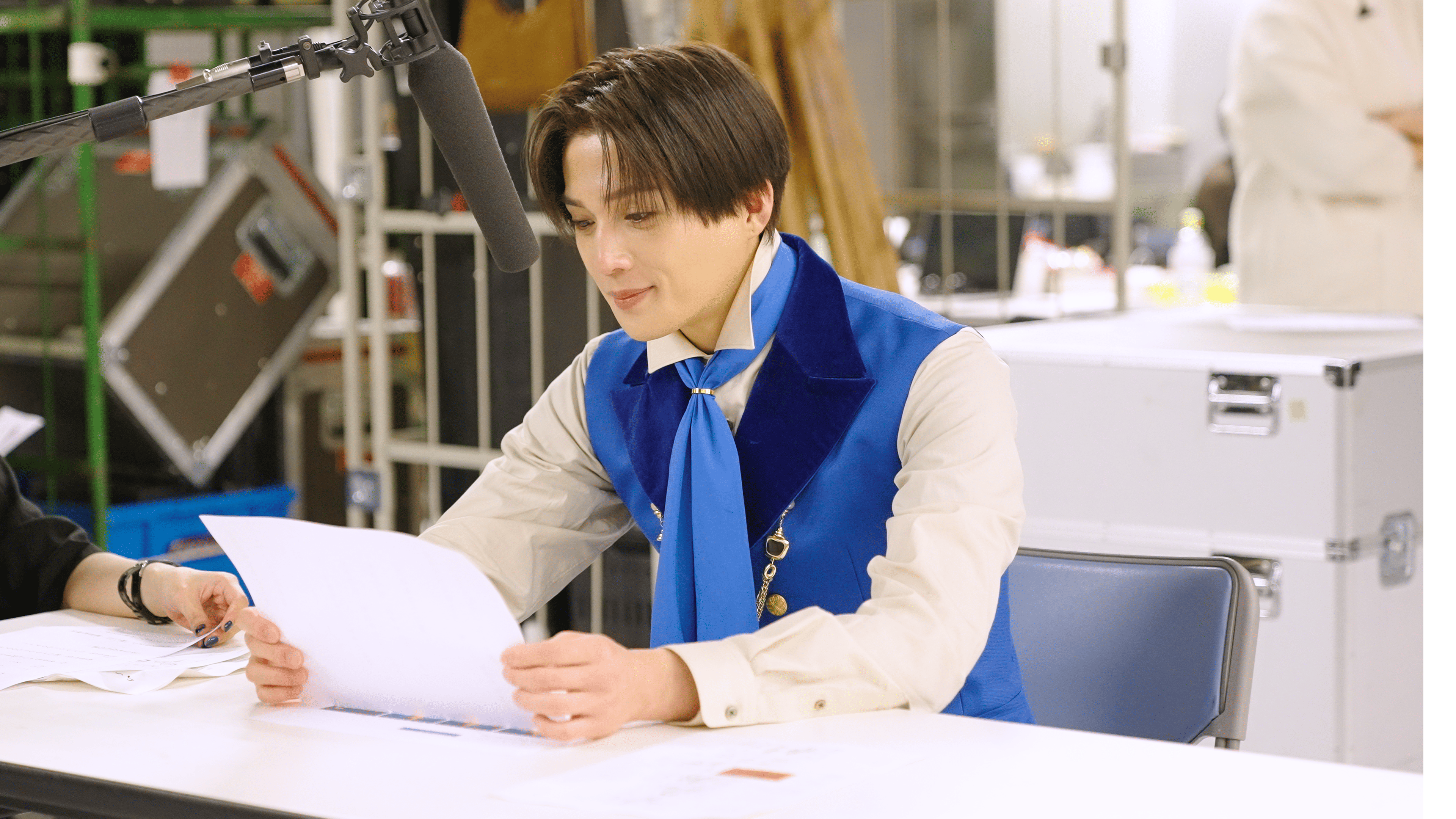 「紅茶花伝」を象徴するロイヤルブルーの妖精衣装に身を包んだ八木さん。長い丈の衣装もさらりと着こなし、スタイルの良さが際立ちます。撮影が始まると監督の指示を真剣な眼差しで聞きながら、集中した演技により、短いカットで次々とOKを連発。カット後はスタッフと談笑するなど、リラックスした様子も見せていました。時には「紅茶花伝 ロイヤルミルクティー」というセリフを噛んでしまう場面もありましたが、八木さんの柔和な人柄と高い集中力が、温かくスムーズな現場の雰囲気を作り出していました。