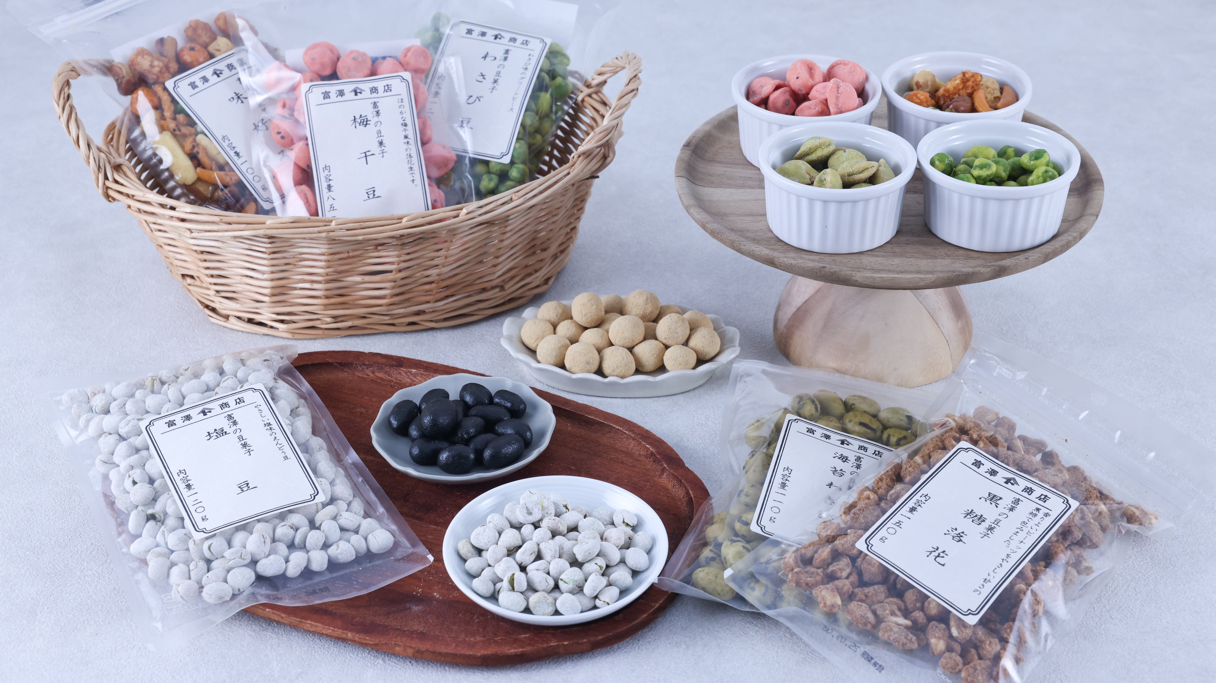 ④ 16種の中から選んで楽しい!豆菓子3個セットが1,080円!