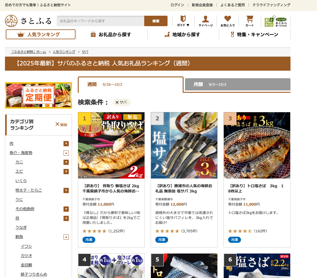 飯田商店の「訳あり骨取り無塩さば」はふるさと納税サイト「さとふる」の鯖ランキングでも1位を獲得しました。この評価は、寄付者からの高評価とリピート購入に基づいており、品質の高さが反映されています。