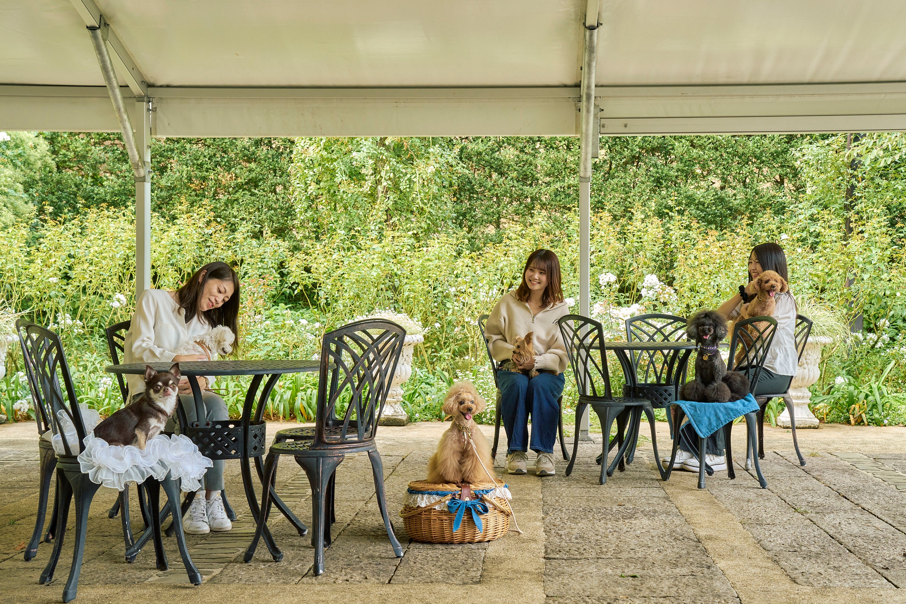 園内中腹の”ウエディングガーデン”のテントの中にドッグランを開設。真夏の日差しや雨からも守ってくれるので天候問わず、愛犬とのお出かけをお楽しみいただけます。(場所:ウエディングガーデン)