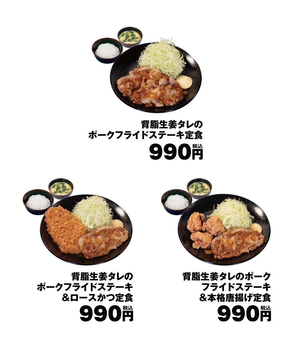 株式会社松屋フーズ(本社:東京都武蔵野市、代表取締役社長:瓦葺 一利)では、とんかつ専門店の「松のや」におきまして、2025年10月22日(水)午後3時より、「背脂生姜タレのポークフライドステーキ定食」を発売いたします。