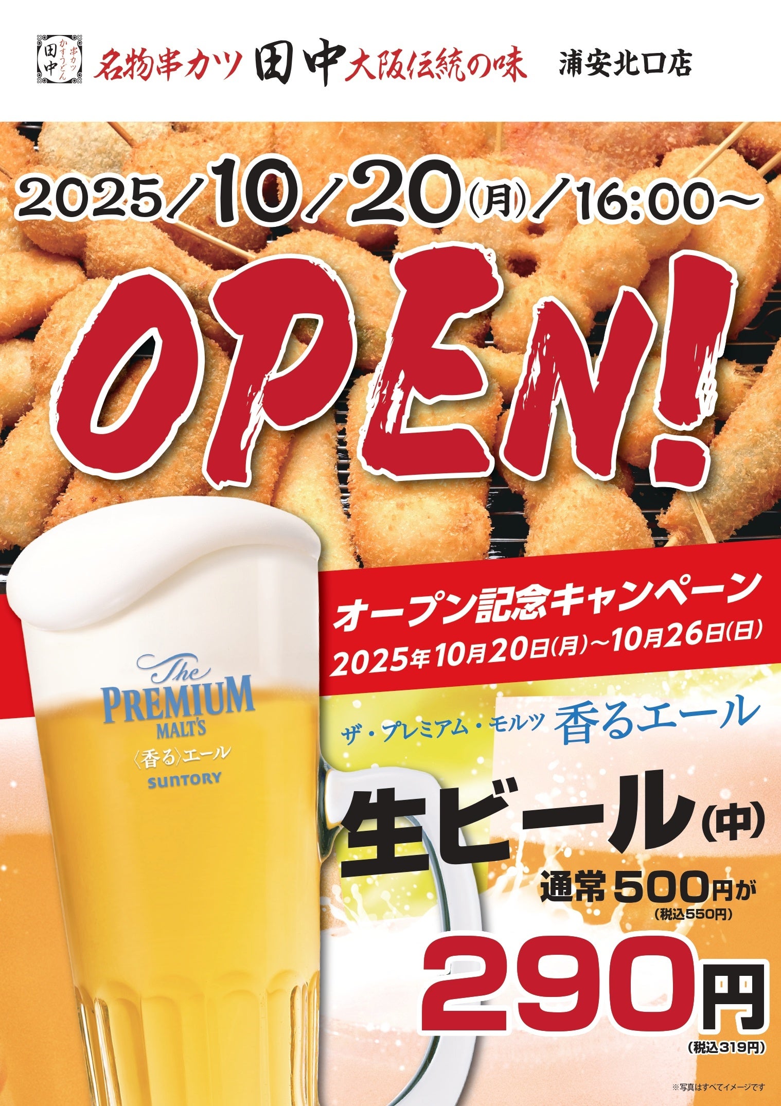 株式会社串カツ田中ホールディングス(本社:東京都品川区東五反田、代表取締役社長:坂本 壽男)の子会社である株式会社串カツ田中は、2025年10月20日(火)に「串カツ田中 浦安北口店」をオープンいたします。
