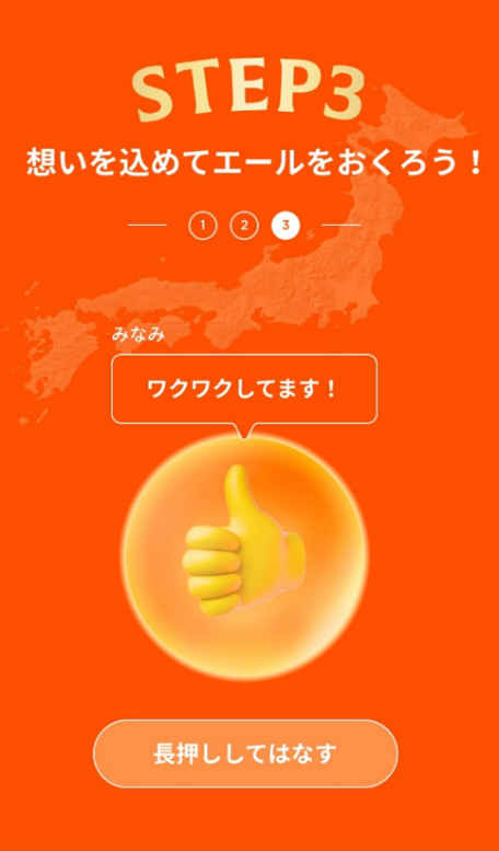 ③ 専用サイト上では、本取り組みの寄付総額を確認できるほか、各自治体に応援メッセージを投稿できる機能があります。さらに「グッドエールJAPAN」への参加証明書をSNSでシェアすることも可能です。