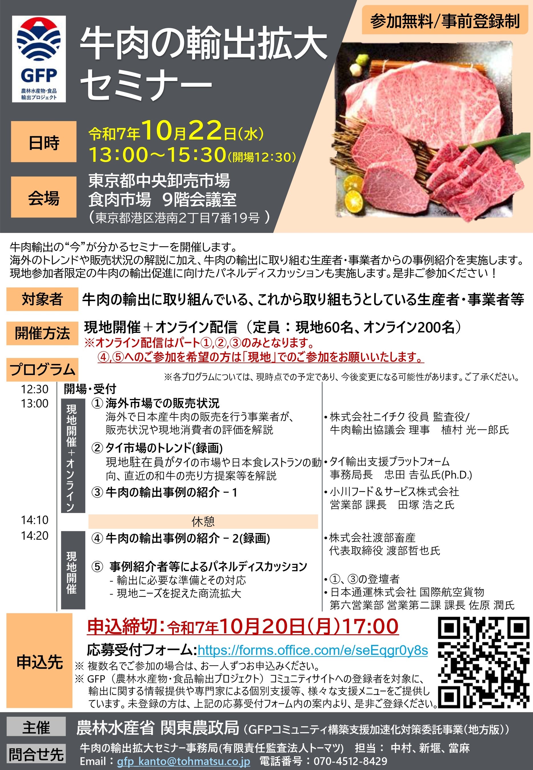 また、第2部では事例紹介者等によるパネルディスカッションにも参加し、他の登壇者とともに牛肉輸出拡大に向けた議論を深めてまいります。