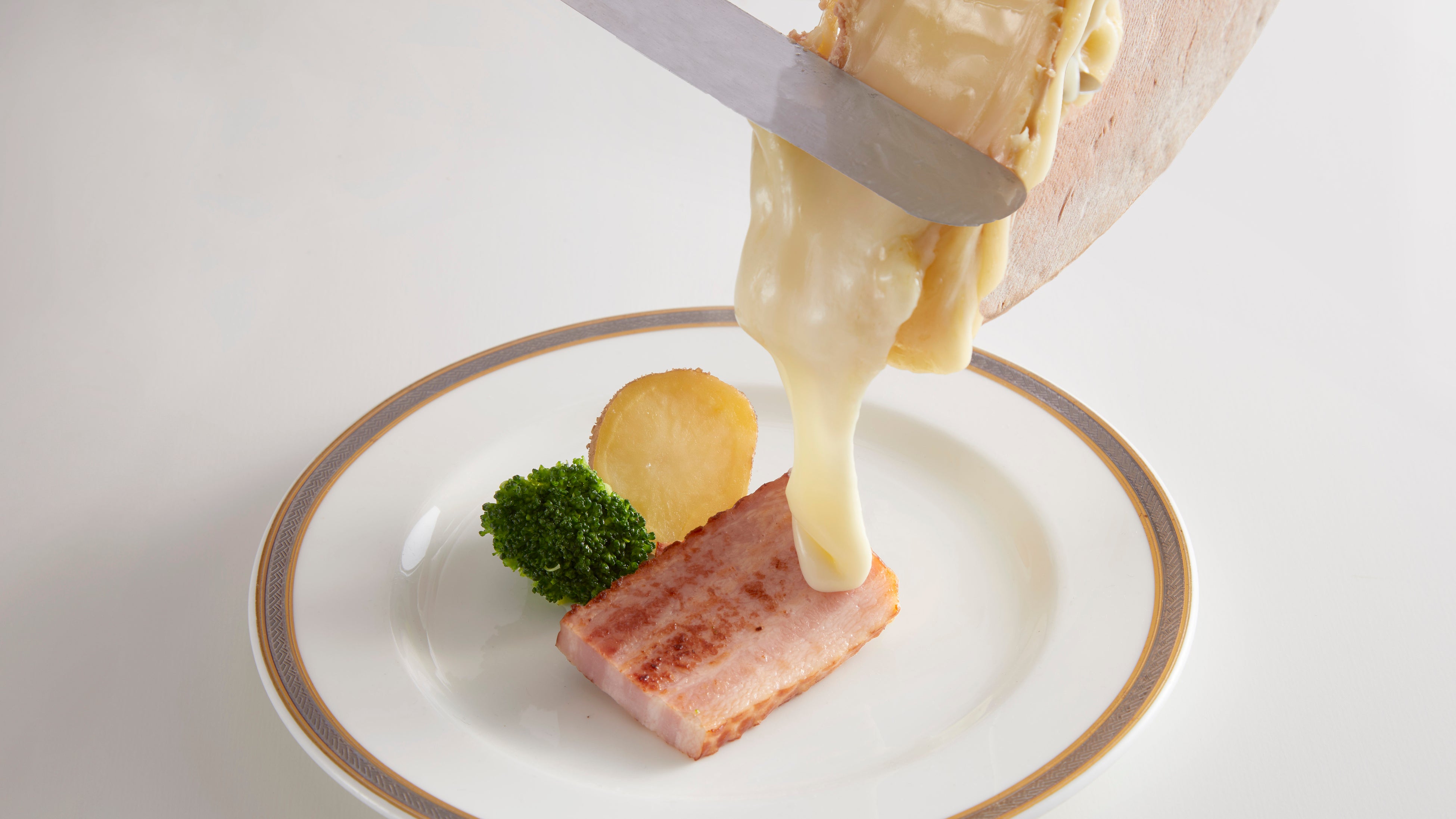 本フェアの目玉商品「熱々とろ~りラクレット(平日限定)」は、熱々に溶かしたチーズをじゃがいもやブロッコリー、厚切りベーコンにかけると野菜の甘みとチーズのコクがとけ合う、味わいの変化をお楽しみいただけます。