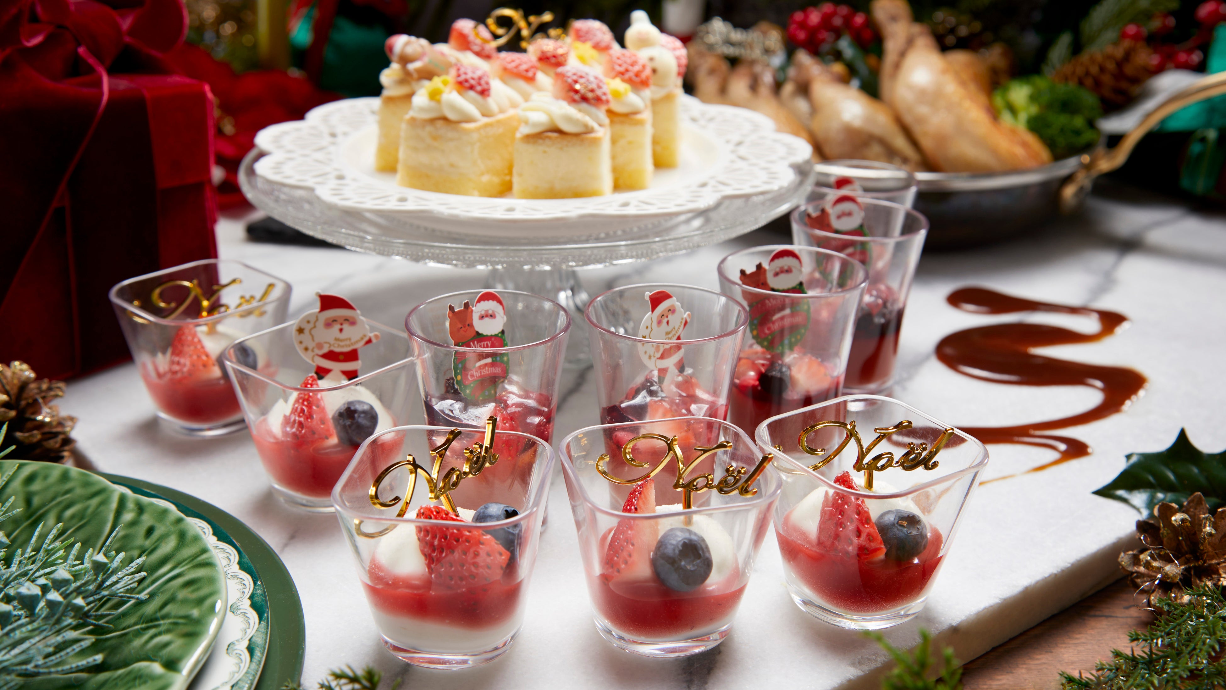クリスマスの華やぎに包まれた期間限定の特別ブッフェをご用意いたしました。通常の多彩なメニューに加え、芳醇な香りとともにじっくりと仕上げた「鶏モモ肉のコンフィ コンソメソース」や、おひとりさま一皿限定の「牛フィレ肉のウエリントン マデラソース ガルニチュール」など、ホテルならではのお料理をお楽しみいただけます。