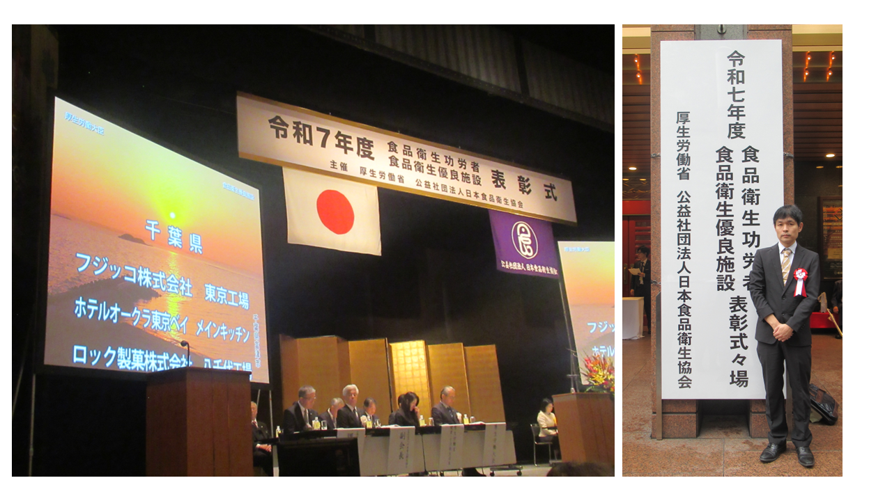 東京工場におきましては、施設設備が衛生的で、食品衛生に関する教育が徹底されている点において高得点の評価をいただき、この度船橋市保健所様からの推薦をいただいたことで受賞にいたりました。