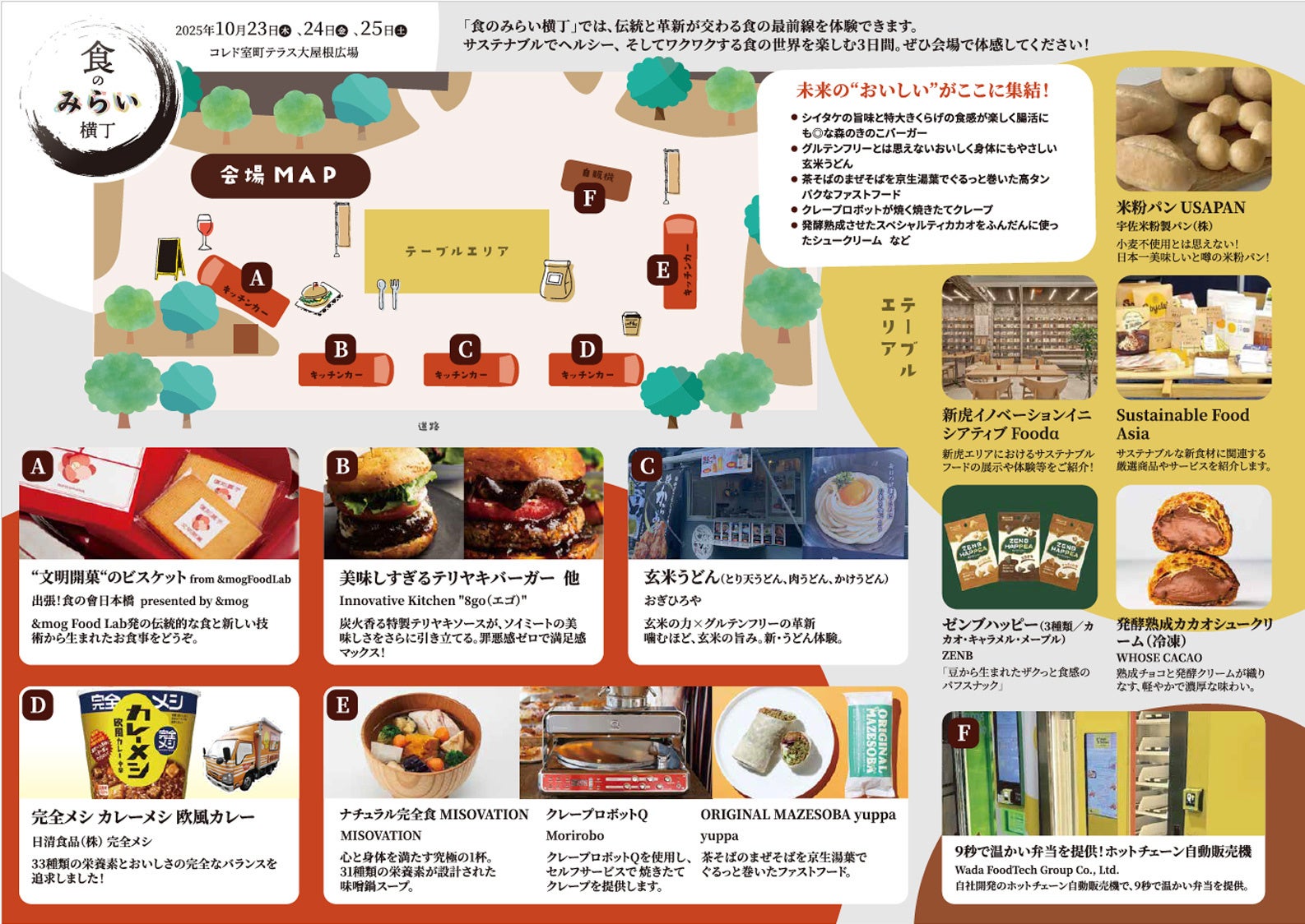 「会場内展示」、「Future Food Court」「食のみらい横丁」の3つのゾーンで美味しい未来の食が楽しめる3日間