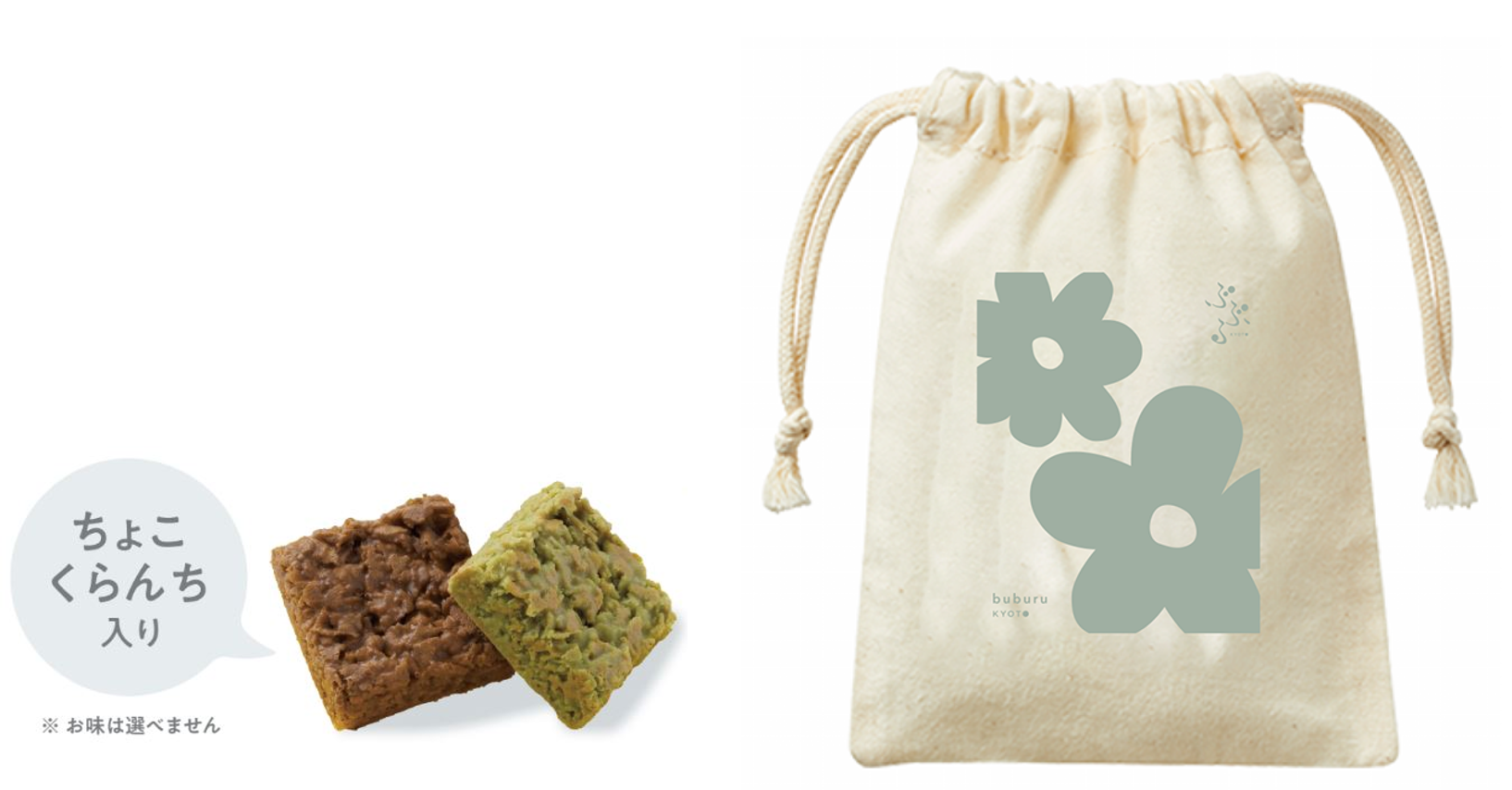 ぶぶるのPOPなデザインをあしらった非売品「限定オリジナル巾着」に人気の「ちょこくらんち」が2個入ったスペシャルなプレゼント!
