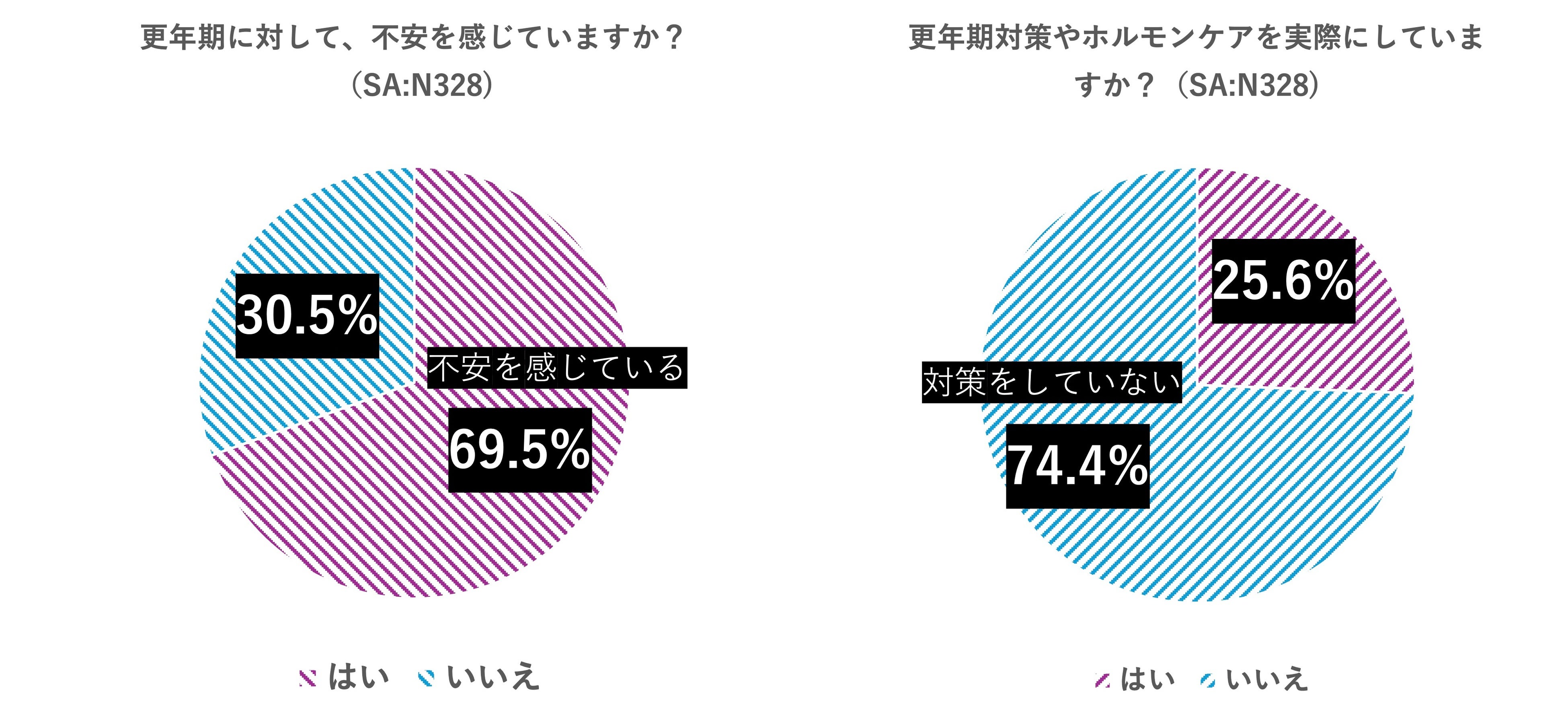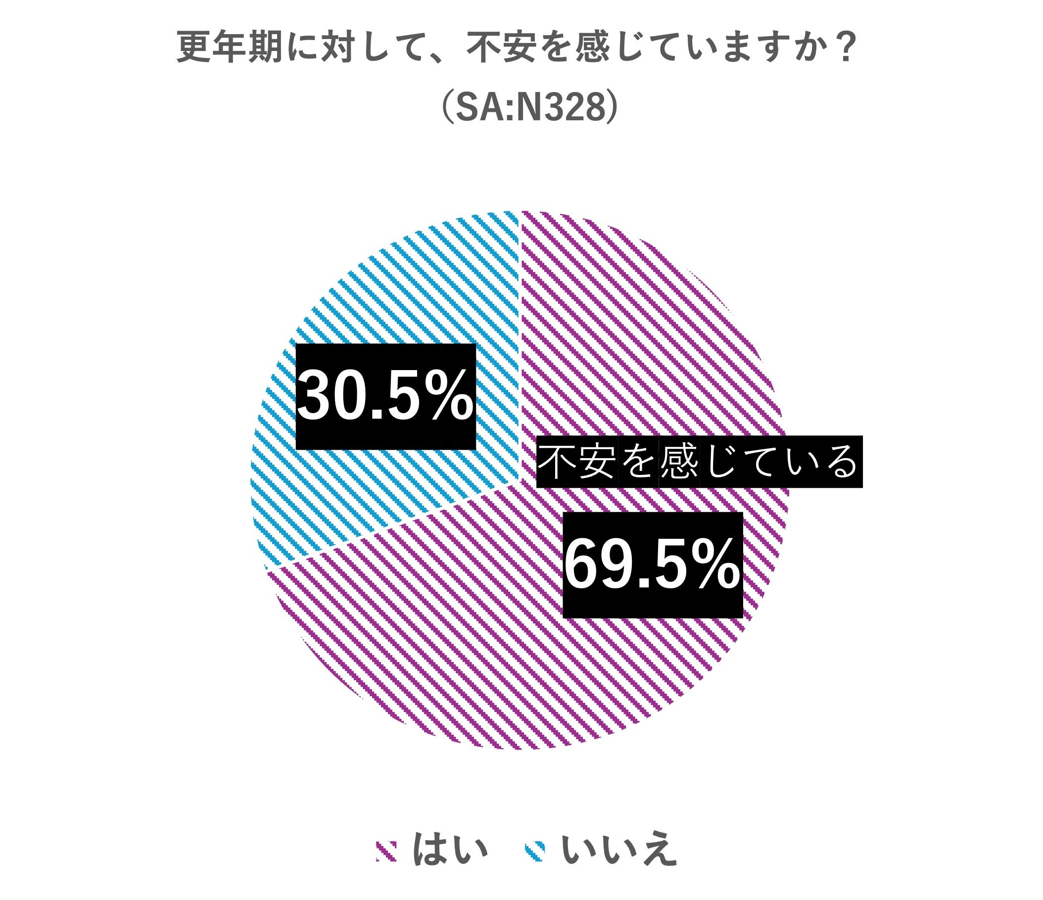 更年期に対して「不安を感じていますか?」という質問に対し、69.5%が「はい」と回答しました。約7割の女性が更年期に対し、何らかの不安を抱えている実態が明らかになりました。