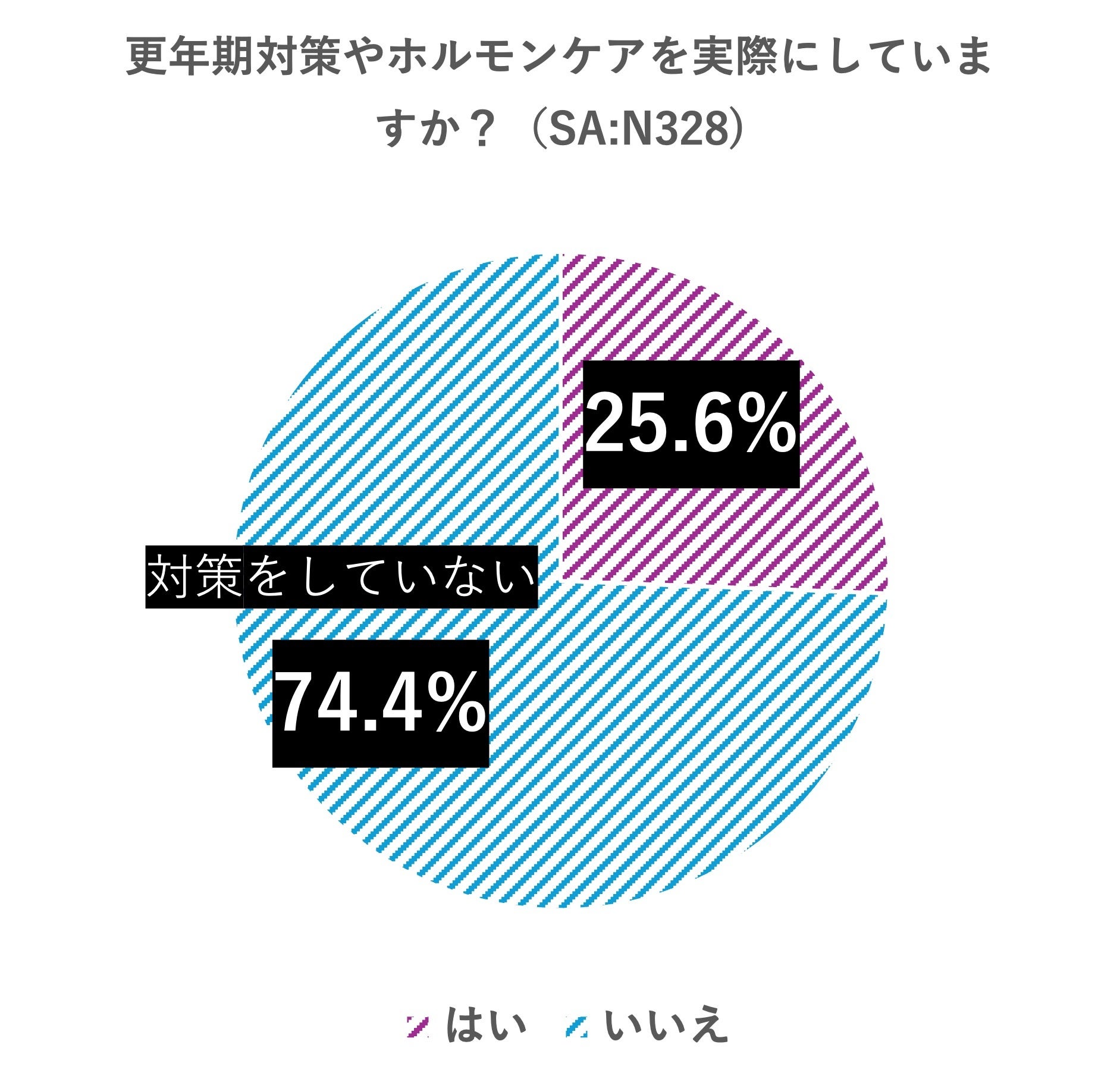 一方、実際に更年期対策やホルモンケアを「実施している」人は25.6%に留まり、意識を持っている層と実際の行動に移している層との間に大きなギャップがあることが示されました(未実施は74.4%)。