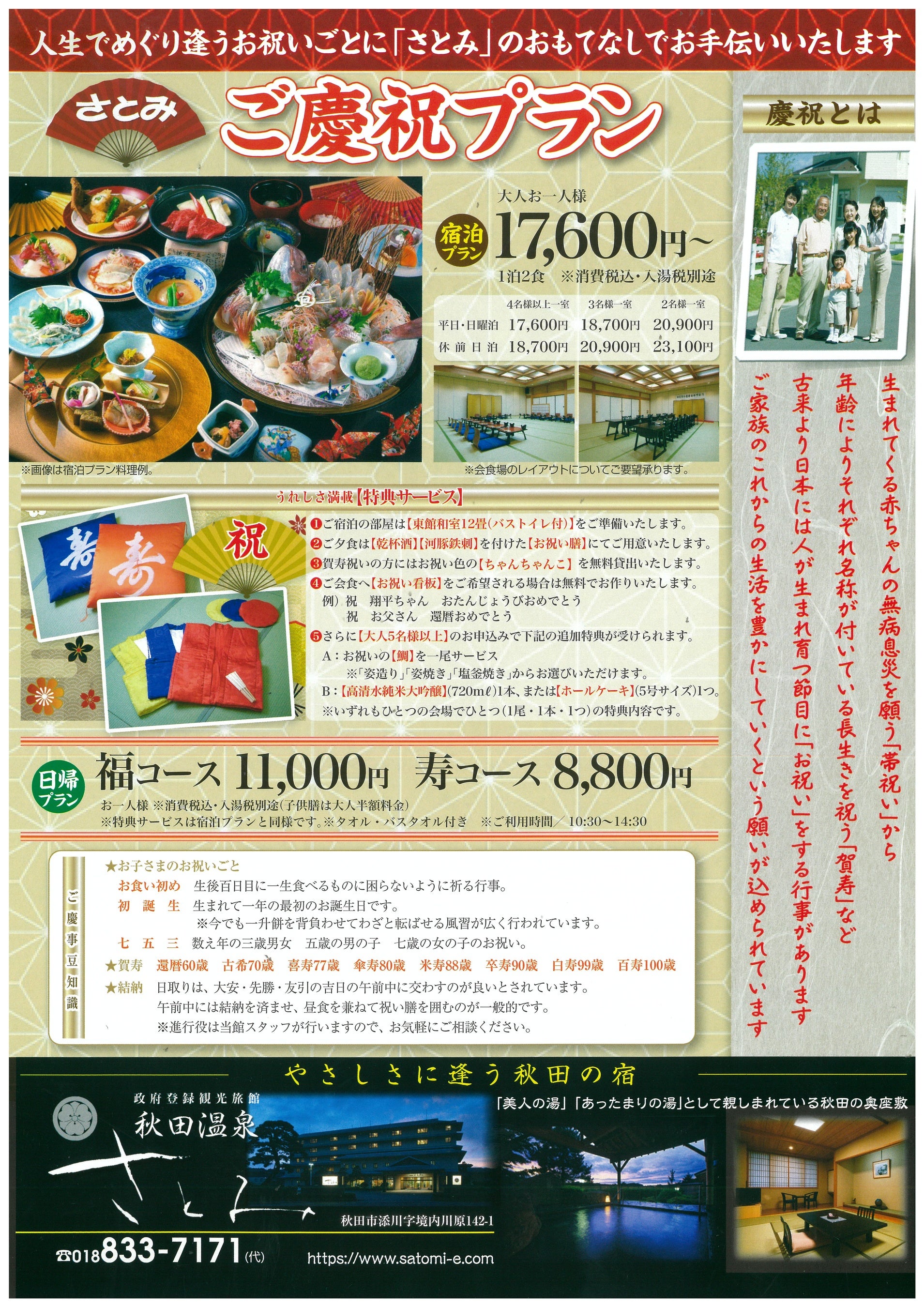 通称「さとみ温泉」として秋田市民の皆様に親しまれてきた当館は、弱アルカリ性の“とろみ”のある、なめらかな肌触りの天然温泉と、四季折々の料理が自慢の宿です。