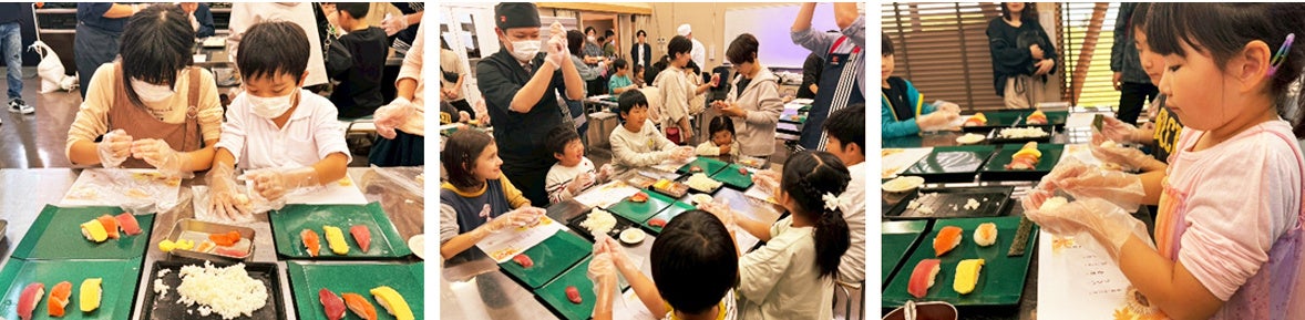 コロワイドグループのかっぱ寿司(カッパ・クリエイト㈱ 本社:神奈川県横浜市、代表取締役社長 山角豪)は、名取市とコロワイドグループとの包括連携協定に基づく連携事業として、2025年10月13日(月)に開催された「環境フェアIN 名取トレイルセンター」にて、小学生等を対象とした食育出張授業「森と海のつながり 寿司にぎり体験」を実施いたしました。