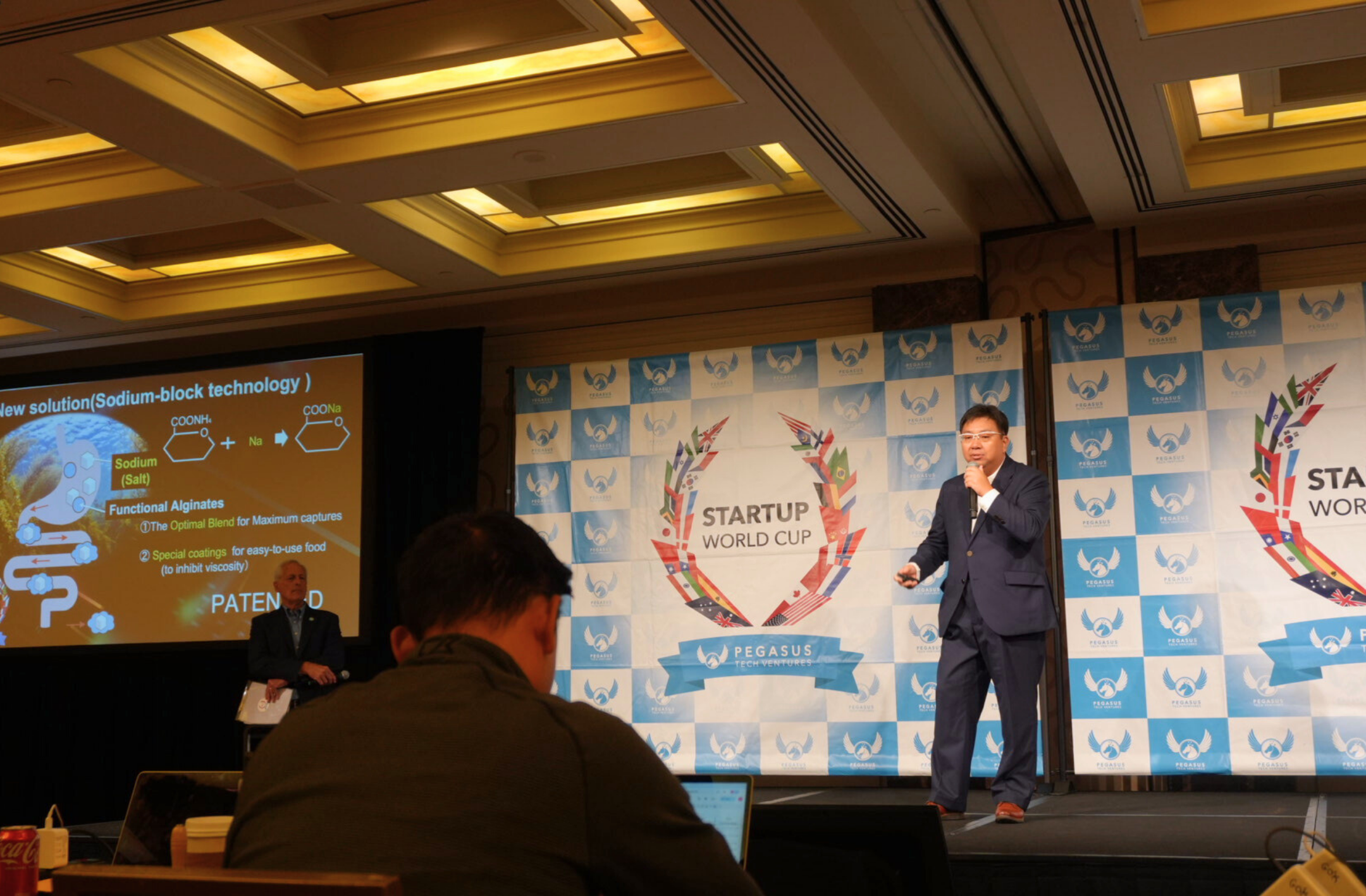 準決勝には世界中から計98社がのスタートアップが出場。翌16日に発表されたTOP10社には惜しくも選出されませんでしたが、会場では「塩分摂取抑制」という世界共通の健康課題に向けた独自アプローチが高く評価されました。