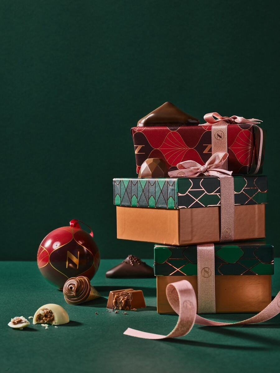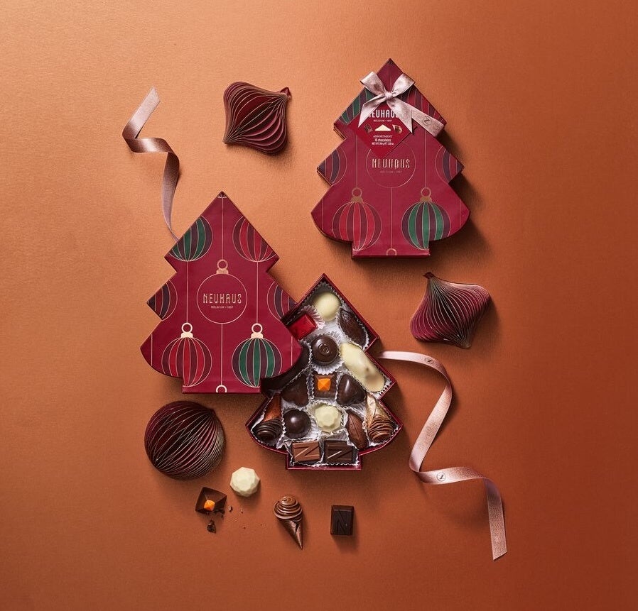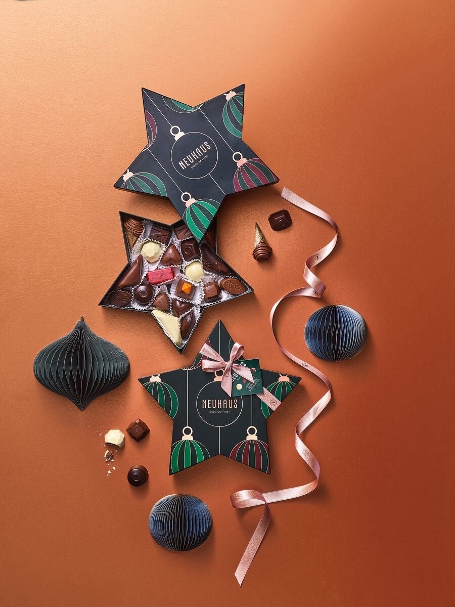 毎年異なるフレイバーが楽しめるノイハウスのクリスマス限定ブック。2025年は、メープルシロップ、ポップコーン、ジンジャーブレッドの3種をご用意しました。星型のチョコレートと流れ星をモチーフにしたパッケージが、特別な贈り物にふさわしい、心温まる一品です。