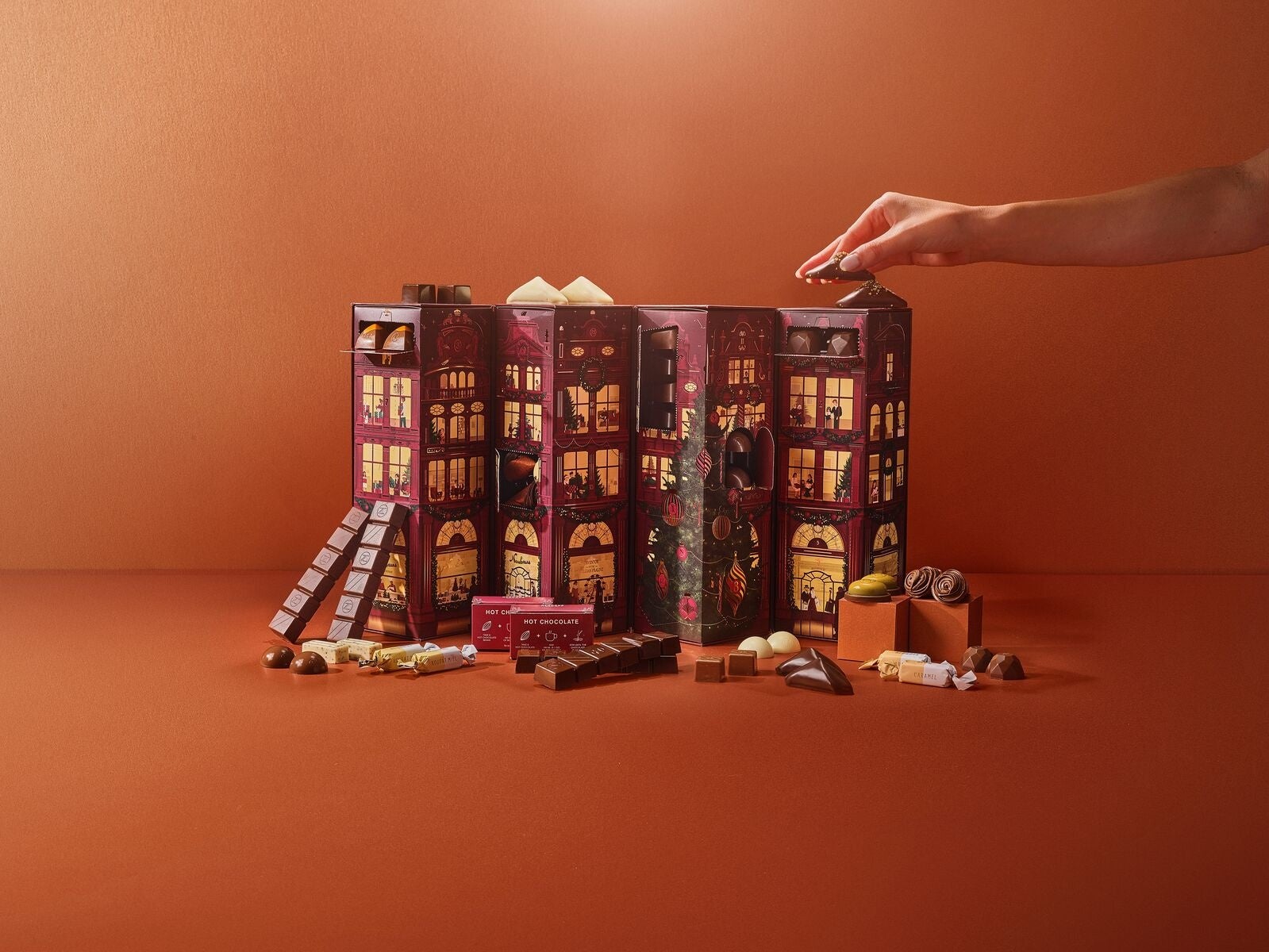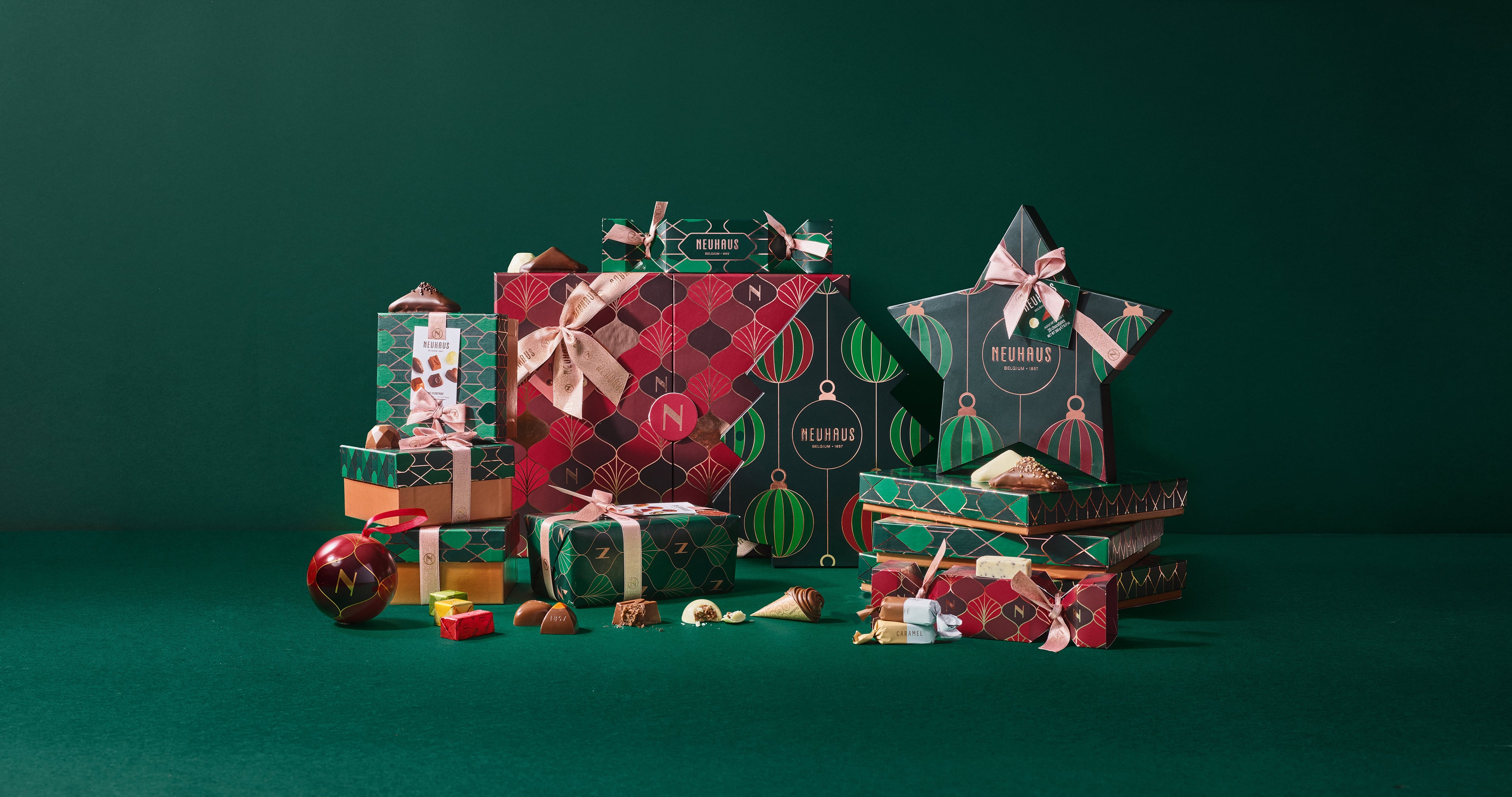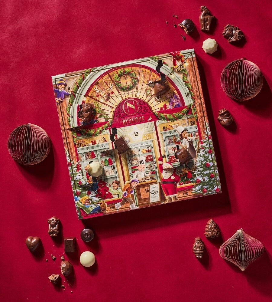 ノイハウスのブティックが彩られた、どこか懐かしく愛らしいアドベントカレンダー。25個のチョコレートをひとつずつ楽しむたび、心が躍るようなひとときが訪れます。こどもから大人まで笑顔になれる、クリスマスの定番としてふさわしい華やかなカレンダーです。