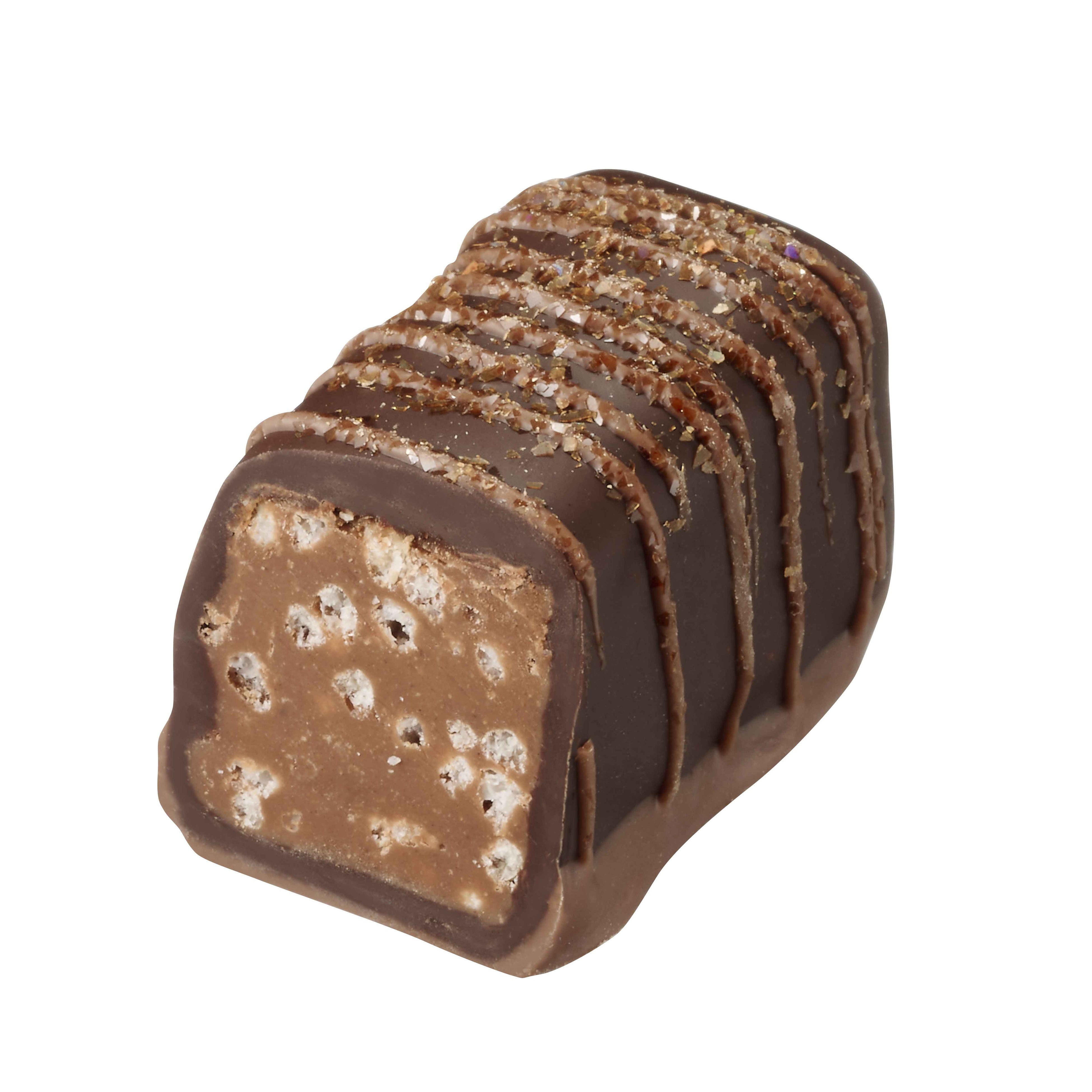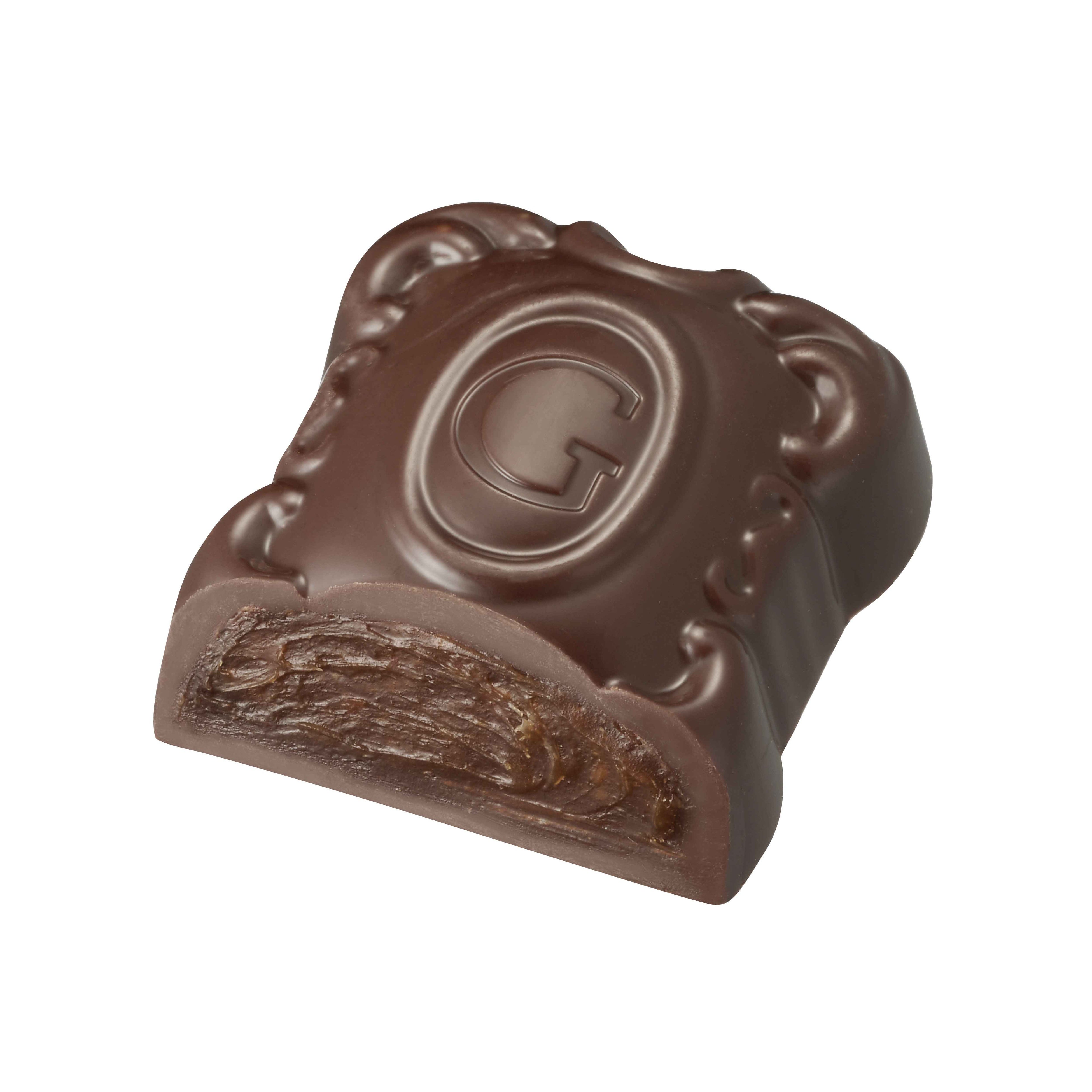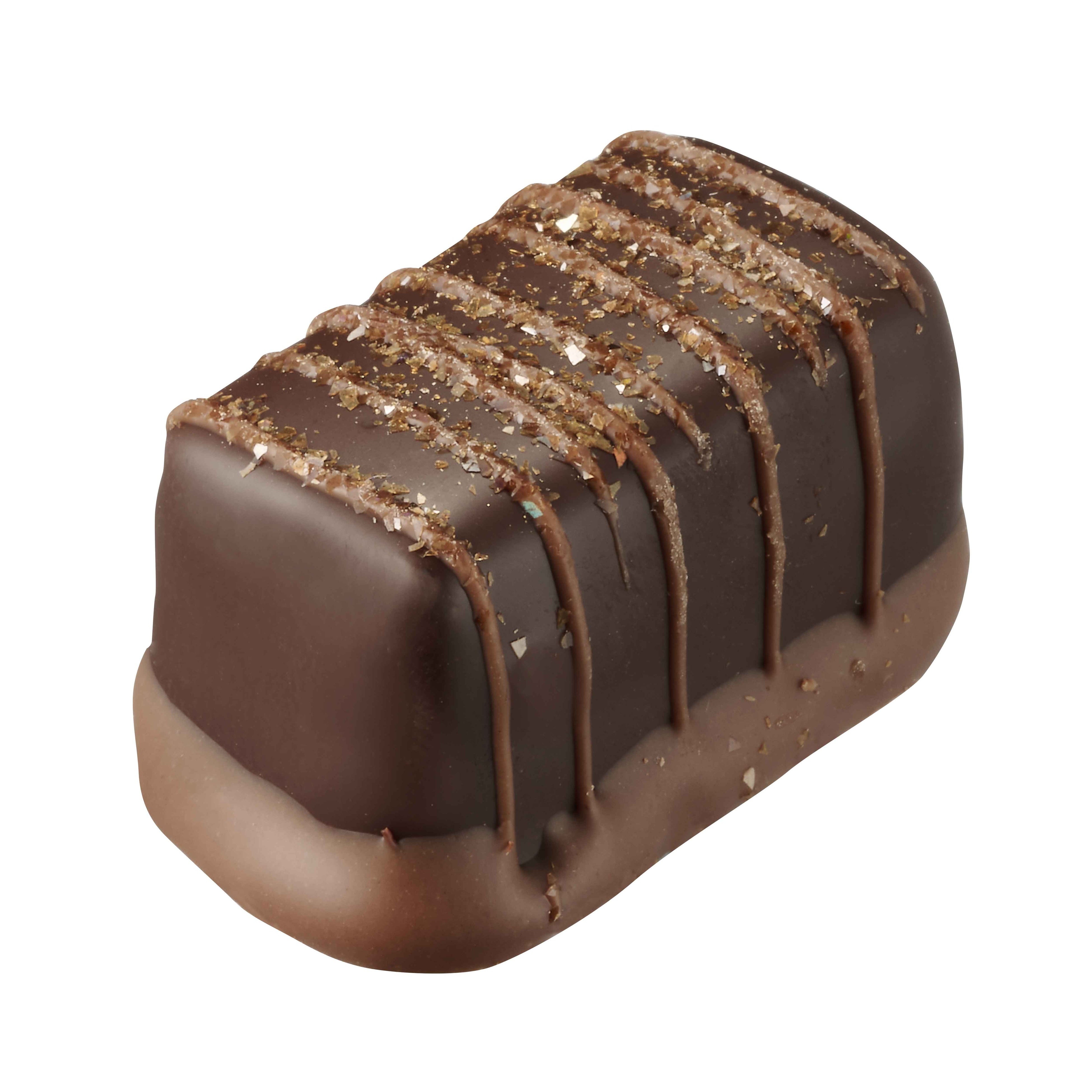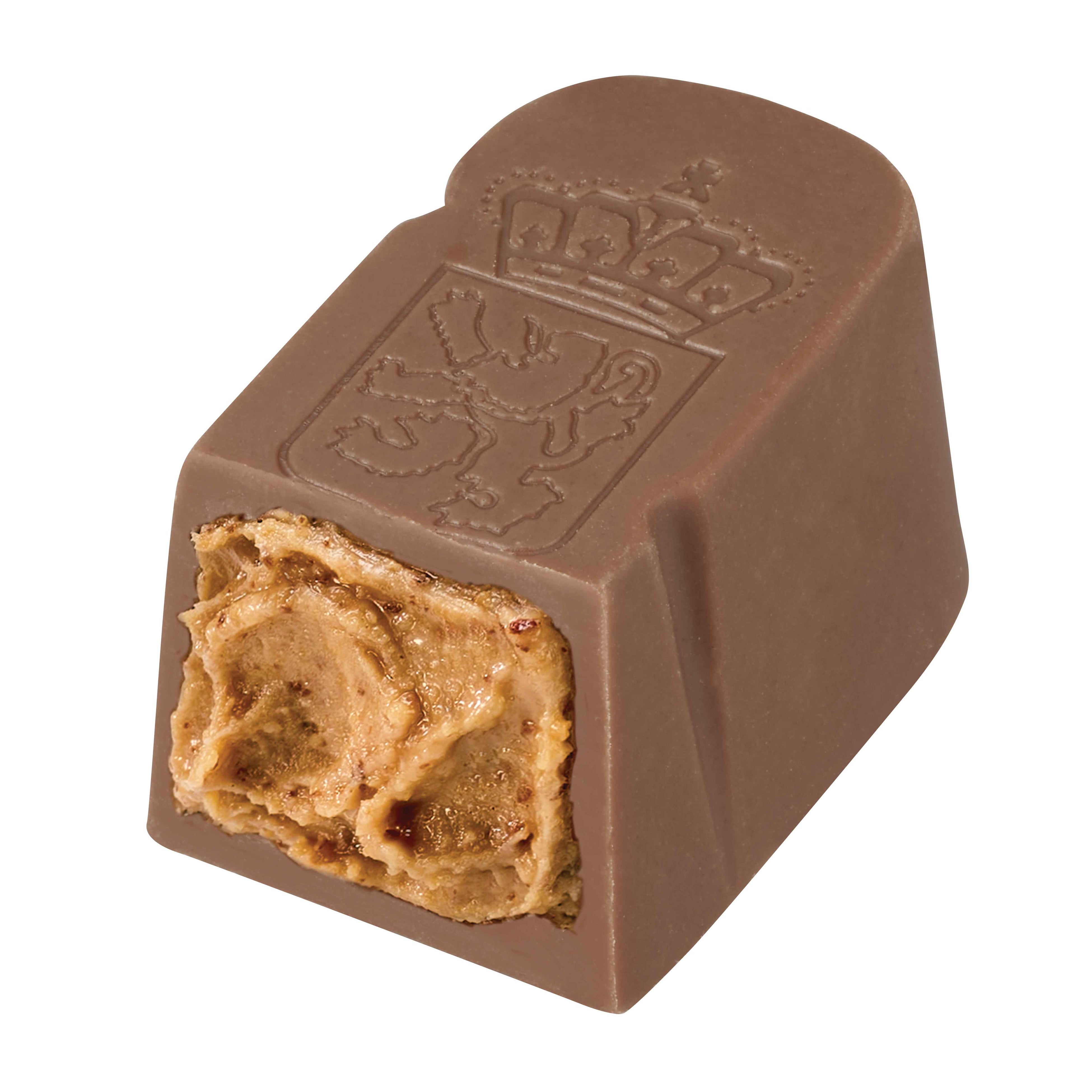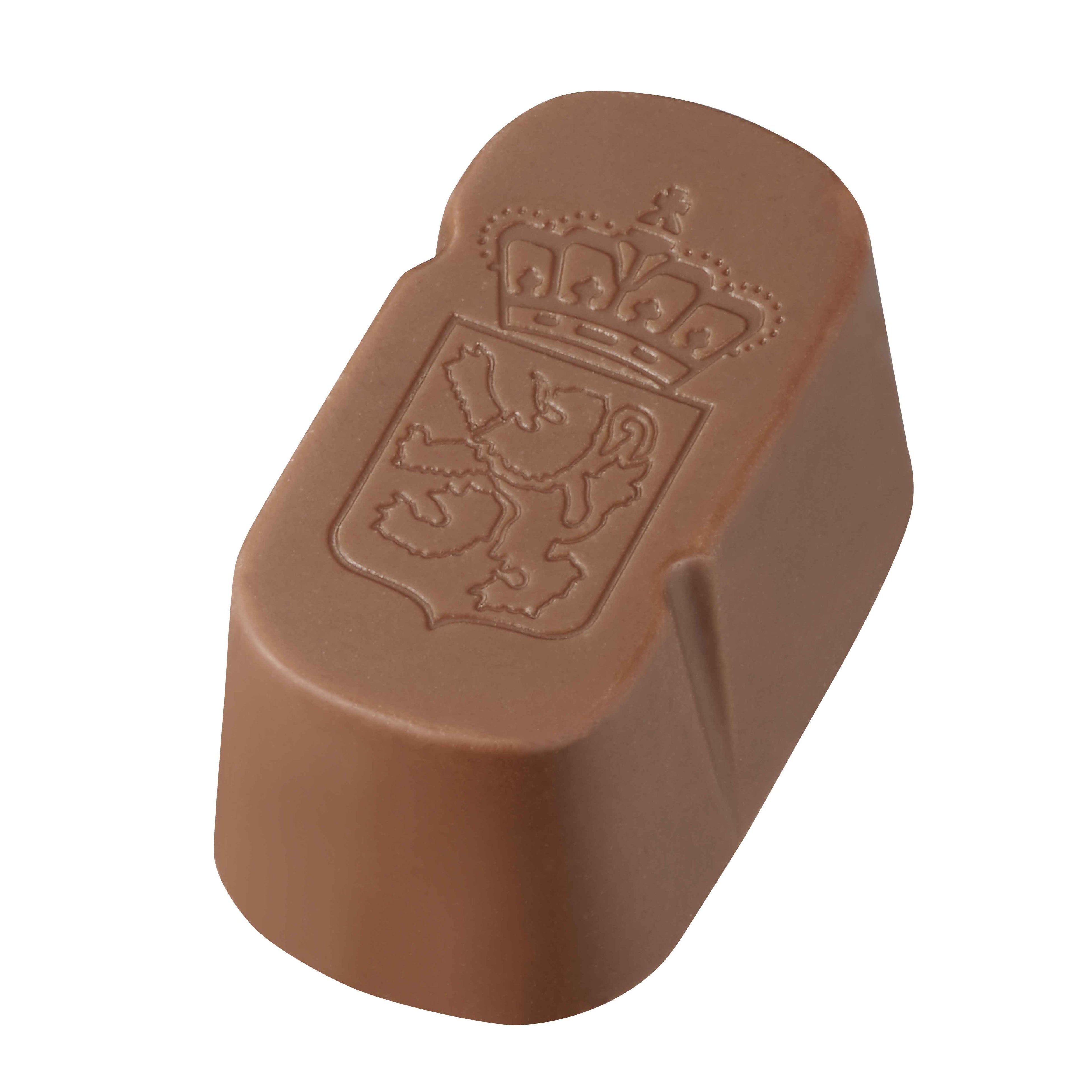 1968年、ベルギー王室御用達ブランドとして認定されたことを記念して、ベルギーの象徴であるライオンのモチーフで作られた美しいひと粒。とろけるような口あたりのキャラメルガナッシュをミルクチョコレートで包みました。