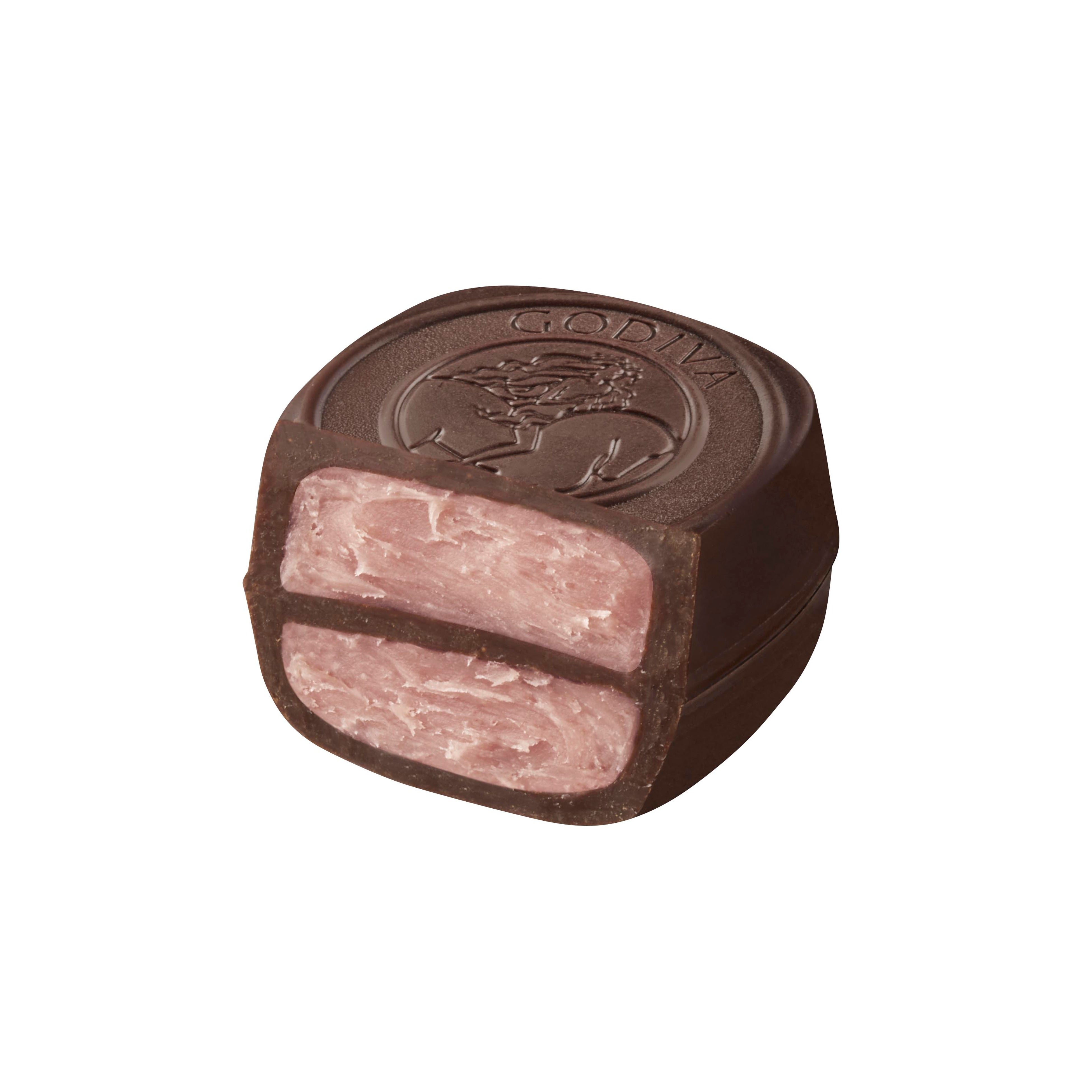 2016年、ゴディバ誕生90周年を記念して作られたひと粒。ローズがほのかに香る甘酸っぱいラズベリーガナッシュを、ダークチョコレートで包みました。セレブレーションにぴったりな甘美で華やかなチョコレートです。