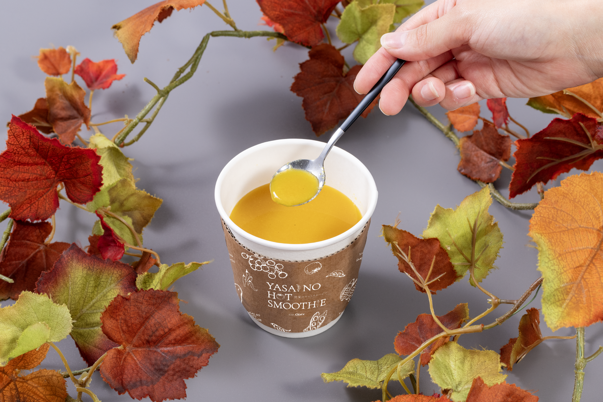 スムージー市場の拡大を背景に、冷えを感じやすいこれからの季節に“温かい”スムージーで身体を温めてほしいとの思いから、当社が運営するカフェにて11月中旬より「野菜のホットスムージー」をリニューアル発売します。今回から容器をスープカップからオリジナルデザインの紙コップへ刷新し、テイクアウトはもちろん、オフィス利用にも最適化することで、新しい“温活”を提案します。
