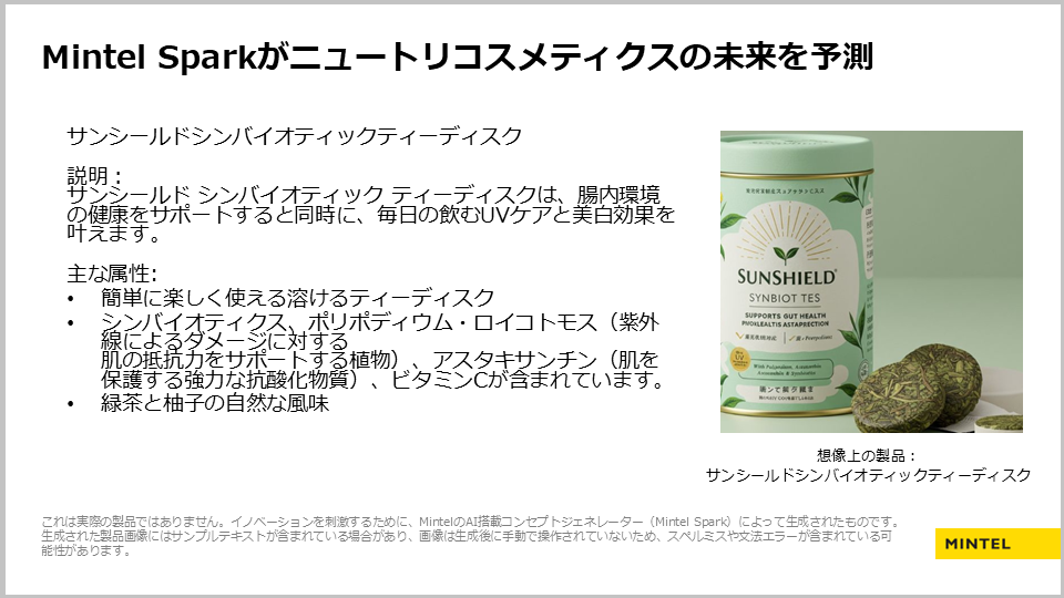 *Mintel Spark(ミンテルスパーク)―ミンテルのレポートや保有するデータを基に情報検索し、AIの力で商品コンセプト・モックアップを即座に表示できるマーケティングツール