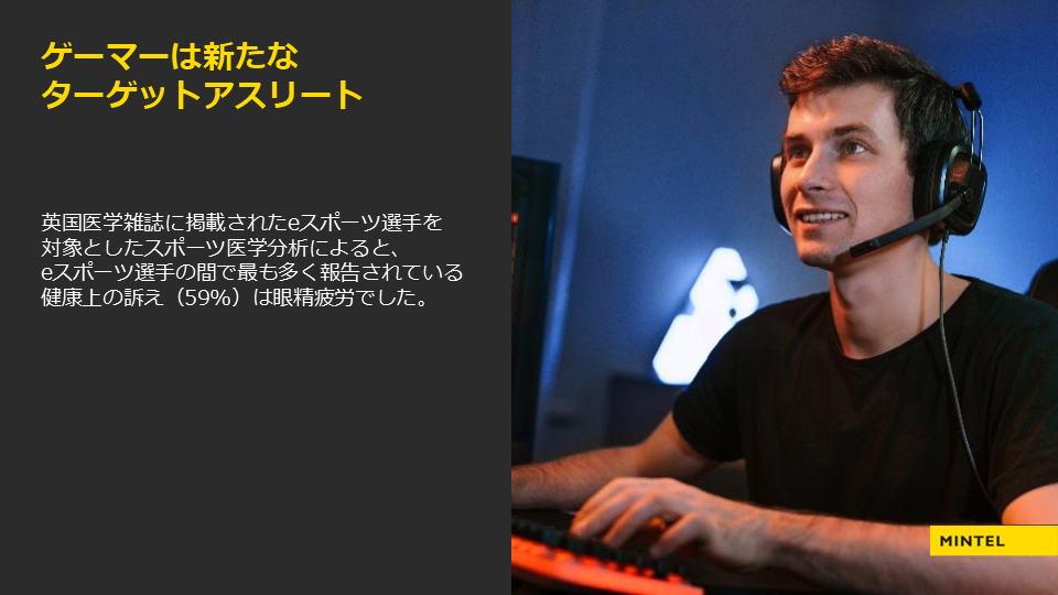 ミーガン:「これまでのタンパク質一辺倒のスポーツ栄養は、一部の選手の胃腸に不快感をもたらす可能性があります。中国の成人の23%は、消化不良を引き起こす可能性があるためプロテインパウダーの摂取を避けているというデータがありますし、かなり多くのアスリートが、何らかの胃の不調を訴えています。食物繊維を使用した植物由来の腸内環境改善は、身体と心の両面で快適な運動を実現し、パフォーマンス向上に寄与します。また、eスポーツの台頭を受けて、目の健康への懸念が高まっています。最近の研究では、腸の健康が目の健康にも影響していることが分かってきており、将来的には腸眼軸(gut-eye axis)を活用した、腸内環境の改善から目の健康を維持する商品の開発が見込まれます。」