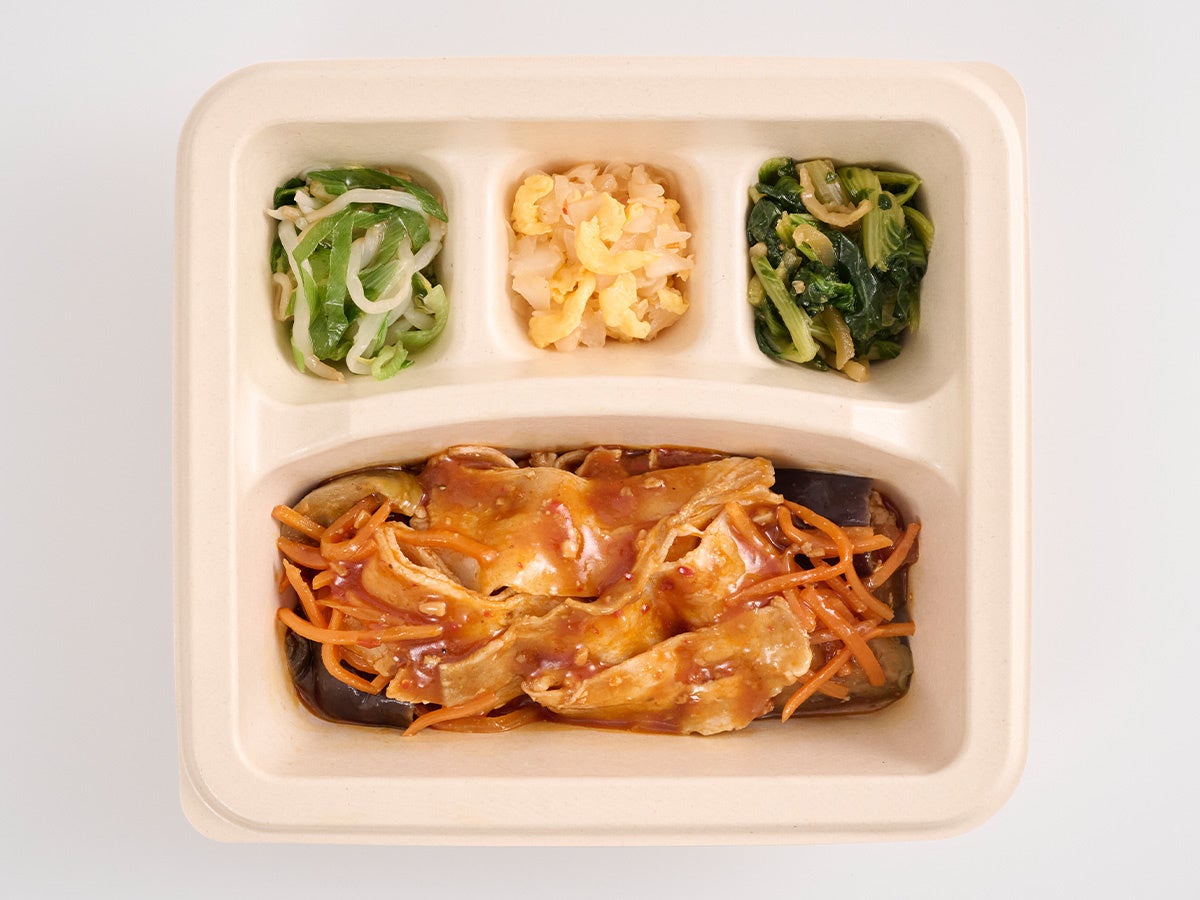 このたび、甘み・コク・香ばしさが絶妙に絡み合う、特製の甘辛中華だれが主役の豚バラプレート「なすと豚バラの甘辛中華だれ」が新登場。甜醤油のまろやかな甘みとコクに、食べるラー油の香ばしい辛味を加えた特製だれが、豚バラ肉と揚げなすによく絡み、しっかりとした味わいと満足感を引き出します。パンチのある味わいながらも後味はすっきり。脂っこさを抑えた絶妙なバランスで、最後まで軽やかに楽しめる一品です。