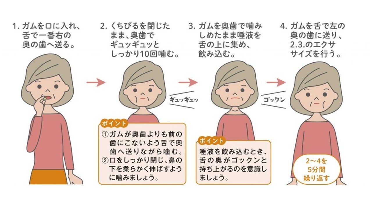 (*1)ガムを使用した口腔健康プログラム:ガム咀嚼を含むお口のエクササイズと通いの場を組み合わせた予防介入プログラム。