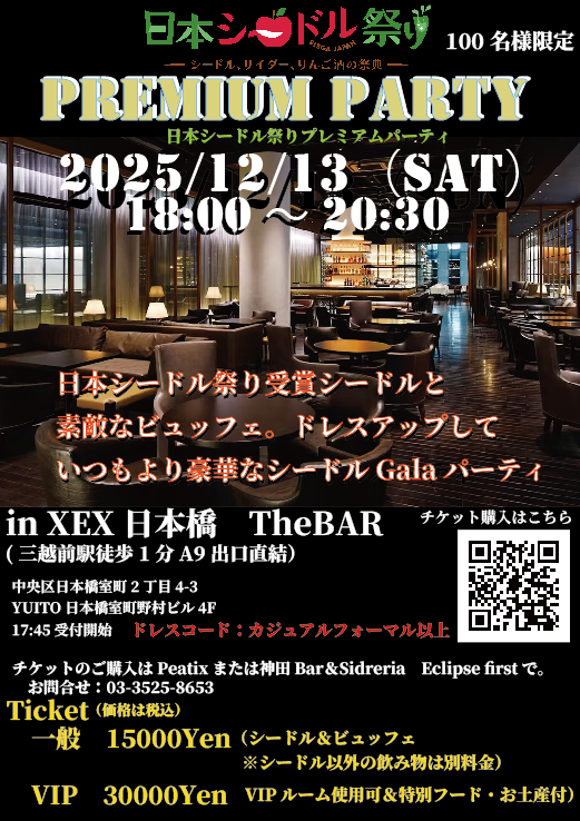 12月13日(土)には、日本シードル祭りのスピンオフ企画として「日本シードル祭りプレミアムパーティー」を開催いたします。