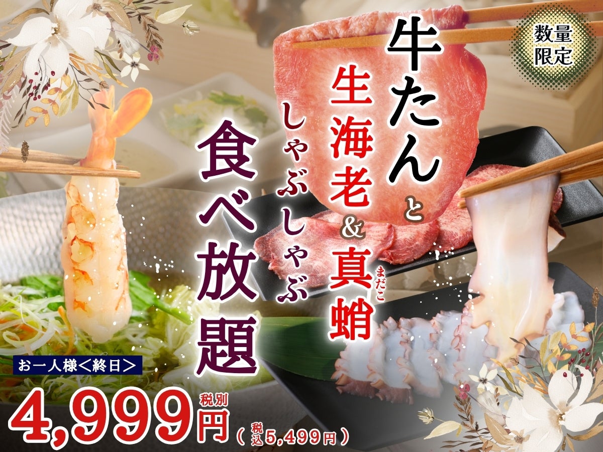この度、2025年10月23日(木)より数量限定にて『牛たん・生海老・真蛸』のしゃぶしゃぶが堪能できる食べ放題特別コースが、数量限定にて新登場!