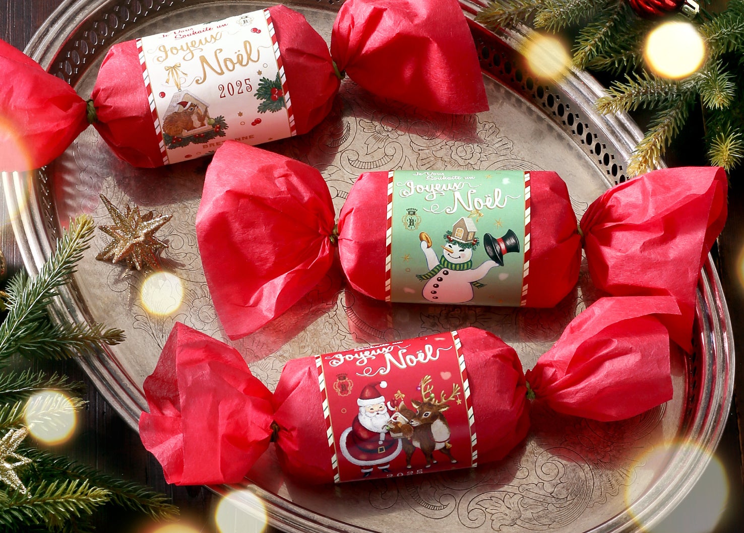 クリスマス限定のイラストを添えた可愛いキャンディ型のパッケージの中に、焦がしバターがコク深いフィナンシェと、レモンが香るやさしい味わいのマドレーヌを包みました。気軽な贈り物におすすめです。