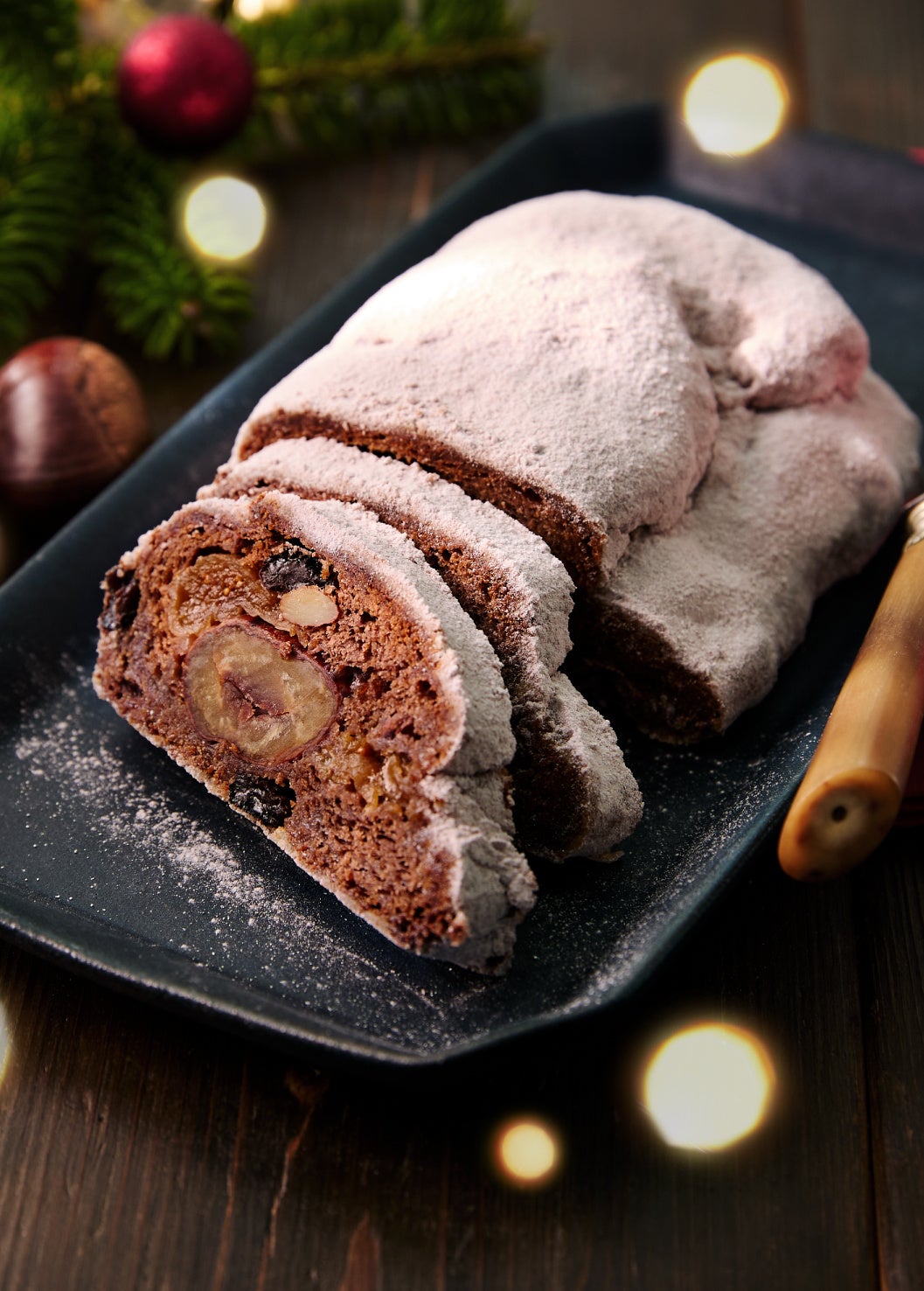 カラメリゼした林檎やラム酒漬けレーズン、オレンジピールを焼き込んだ、7種のスパイスの芳醇な香りが広がる風味豊かなシュトーレン。