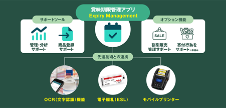 1.「Expiry Management(エクスパイリーマネジメント)」は、売場における賞味期限チェックを80%効率化し、廃棄削減と業務改善を同時に実現するアプリです。全国2,400店舗以上で既に導入されています。