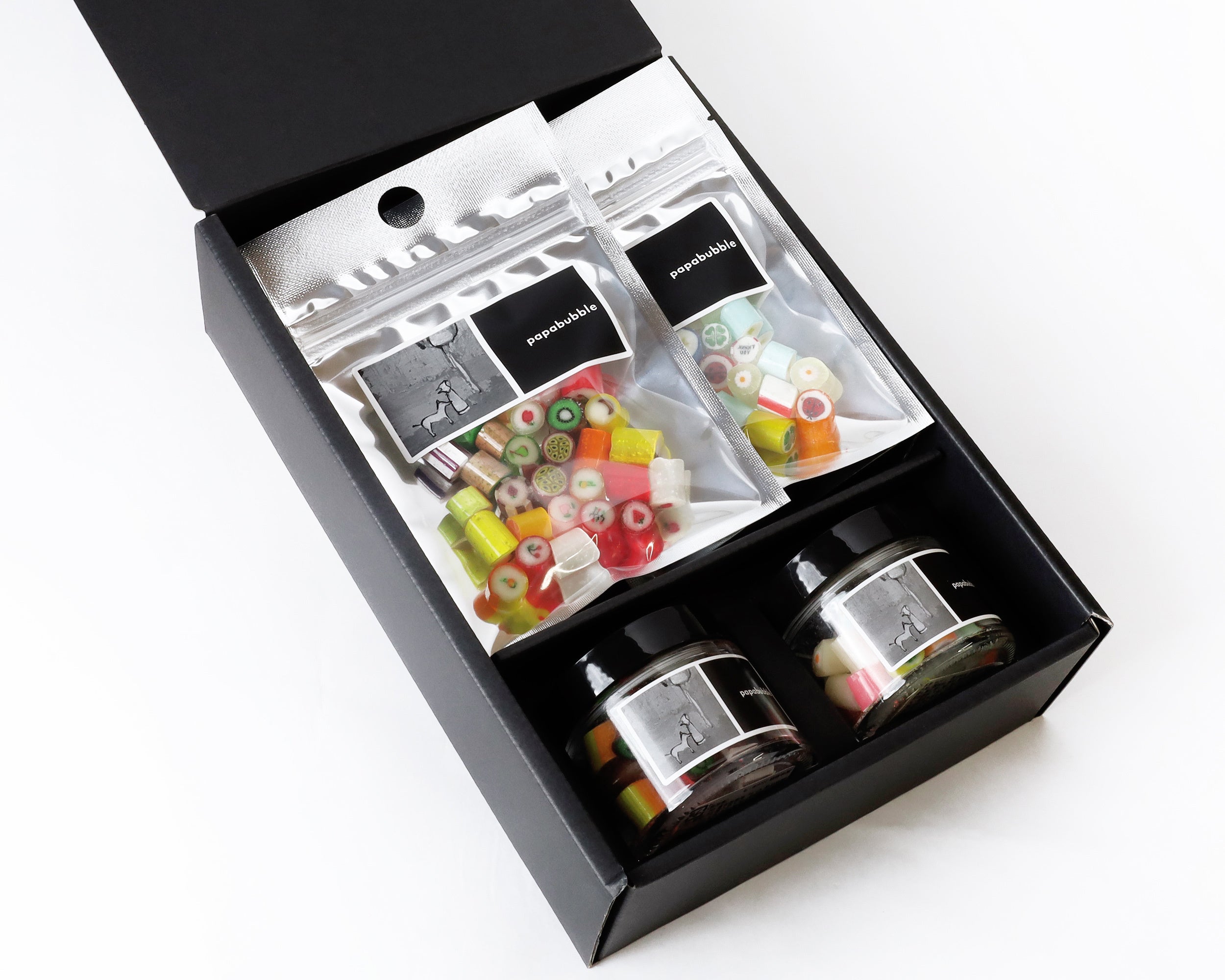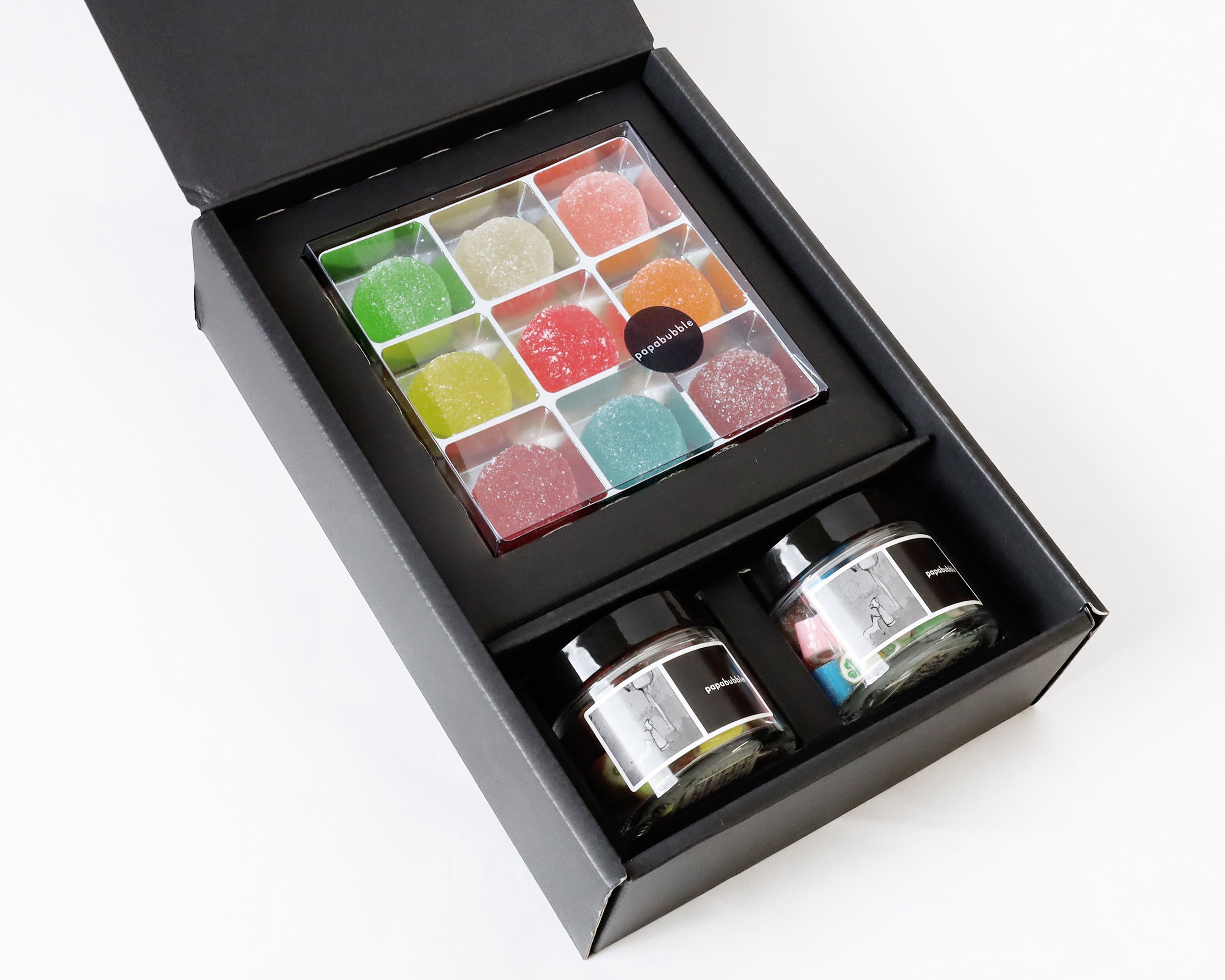 Craft Candy Theater「PAPABUBBLE/パパブブレ」は、ブランドカラーのブラックを基調としたBOXに、彩り豊かなキャンディやグミを詰め合わせたギフトコレクションを、10月21日(月)よりパパブブレ公式サイト(https://papabubble.co.jp/collections/premiumgift)および一部店舗にて発売いたします。