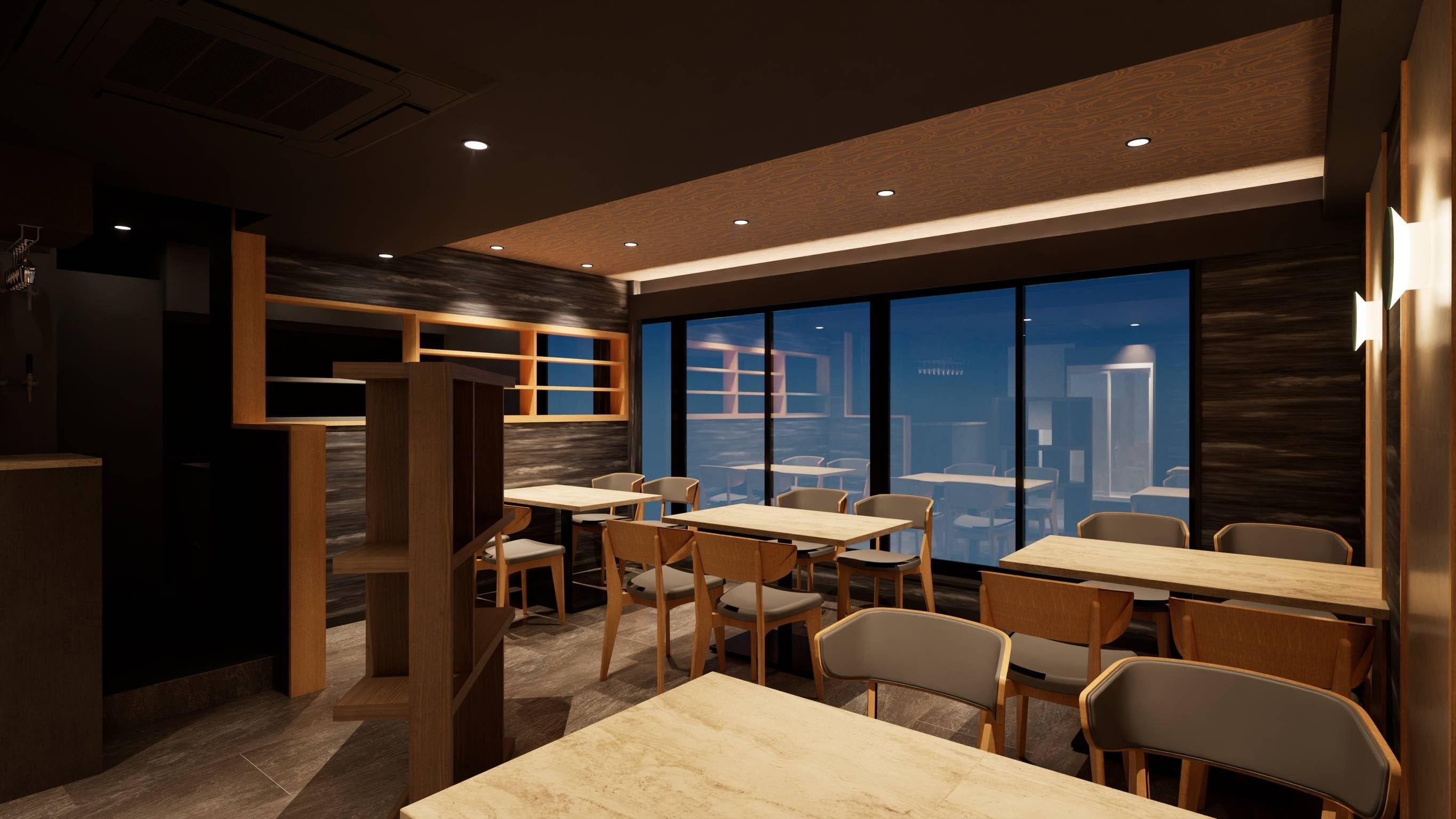 店内照明はややトーンを落とし、静けさと落ち着きを感じられる“和モダン”な演出へ。エントランスにはネオンサインをあしらい、日常から切り替わる「異空間の入り口」を表現。