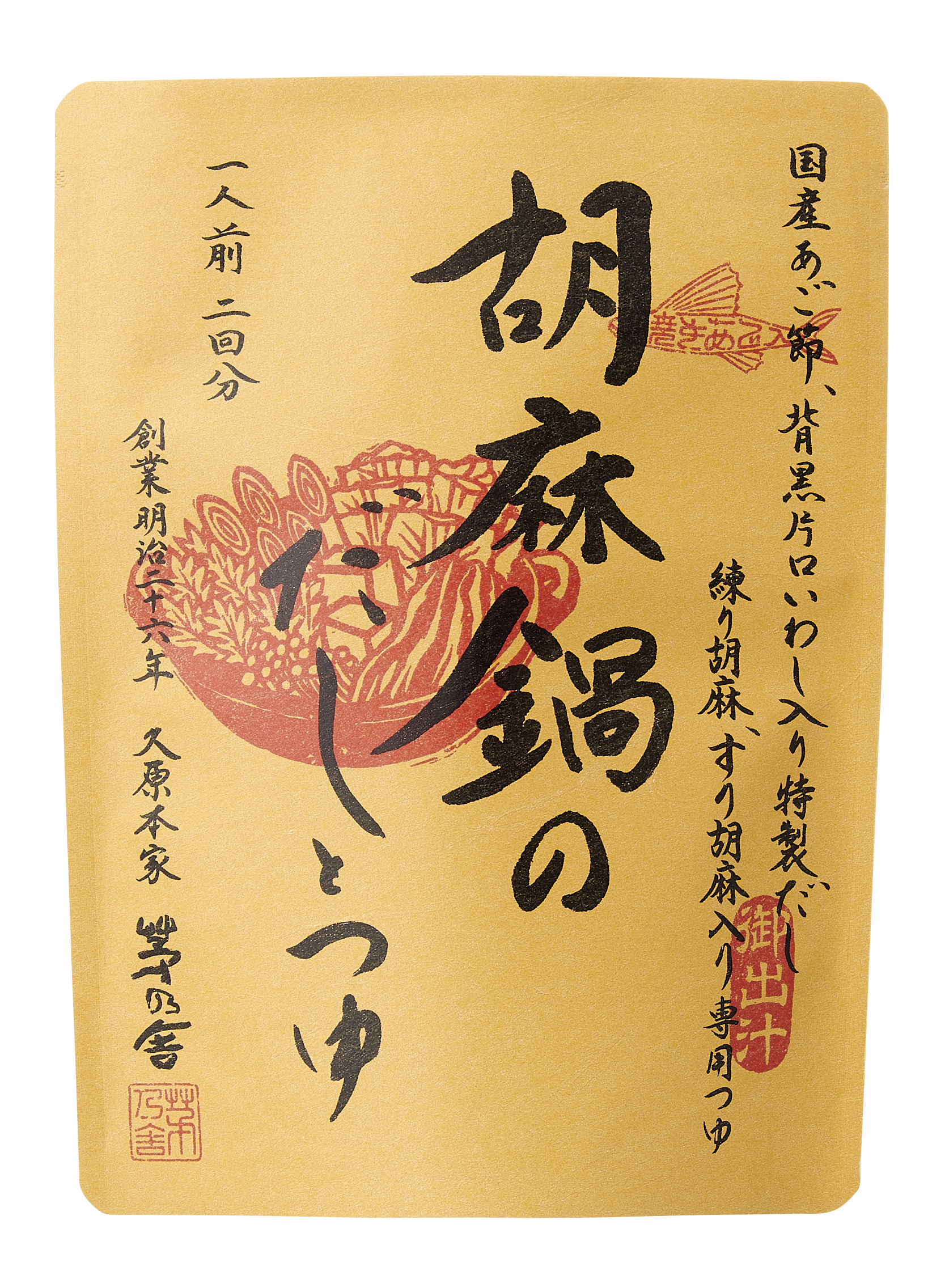 胡麻のまろやかな甘みとコクが生きた胡麻鍋。2種の練り胡麻、すり胡麻をブレンドし、隠し味にきな粉を合わせることで濃厚で香ばしい味わいに仕上げました。