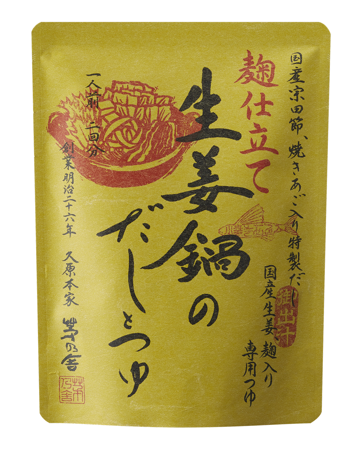 宗田節、焼きあご入りの「特製だし」に、おろし生姜と刻み生姜の香り豊かな麹仕立ての「専用つゆ」を合わせました。生姜の爽やかな風味と麹のまろやかな味わいを楽しめます。