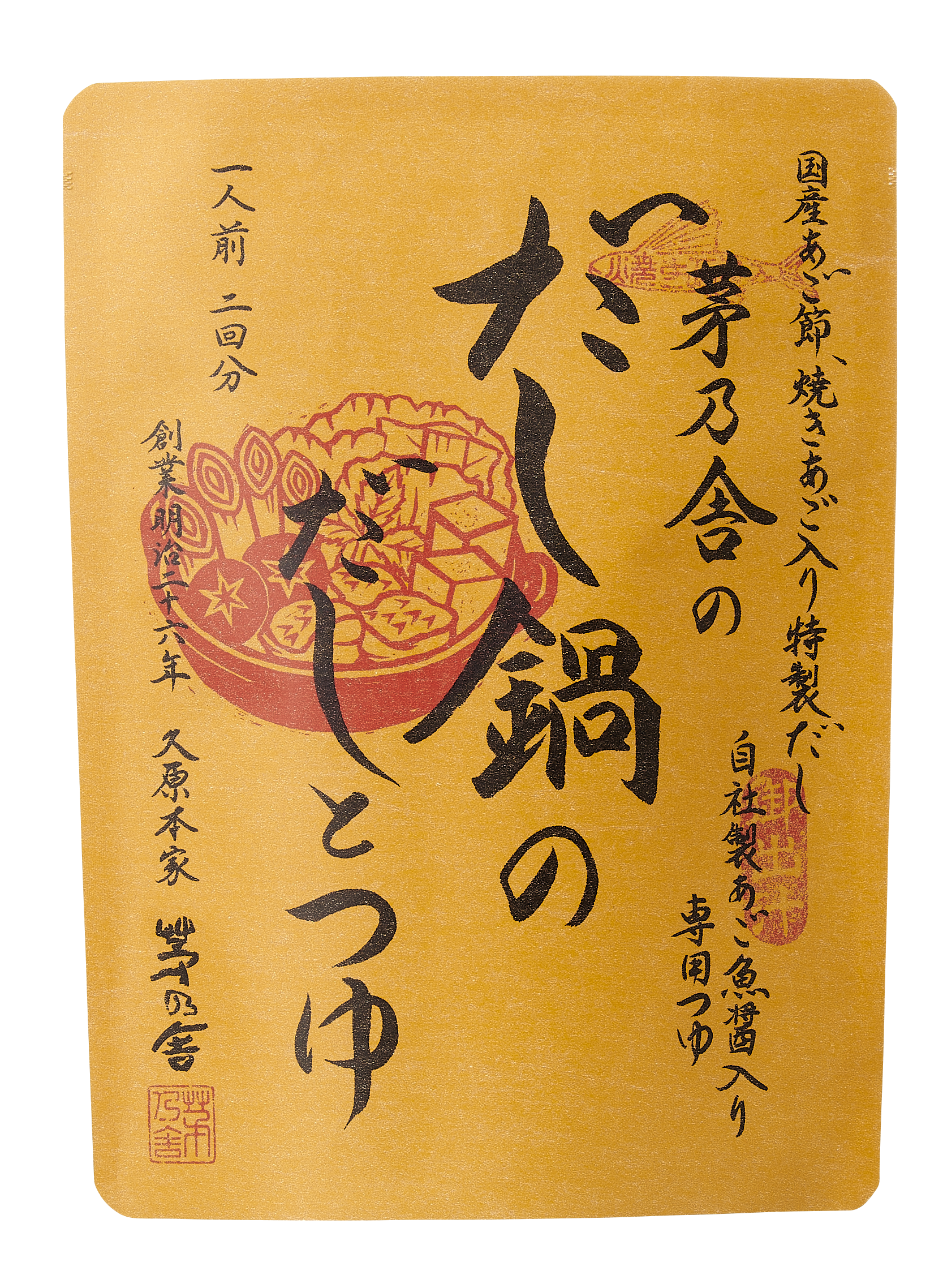 あご節、焼きあごをベースにした、繊細でうまみ豊かな味わい。だしのうまみが体全体に染みわたる、だしが主役のだし鍋です。